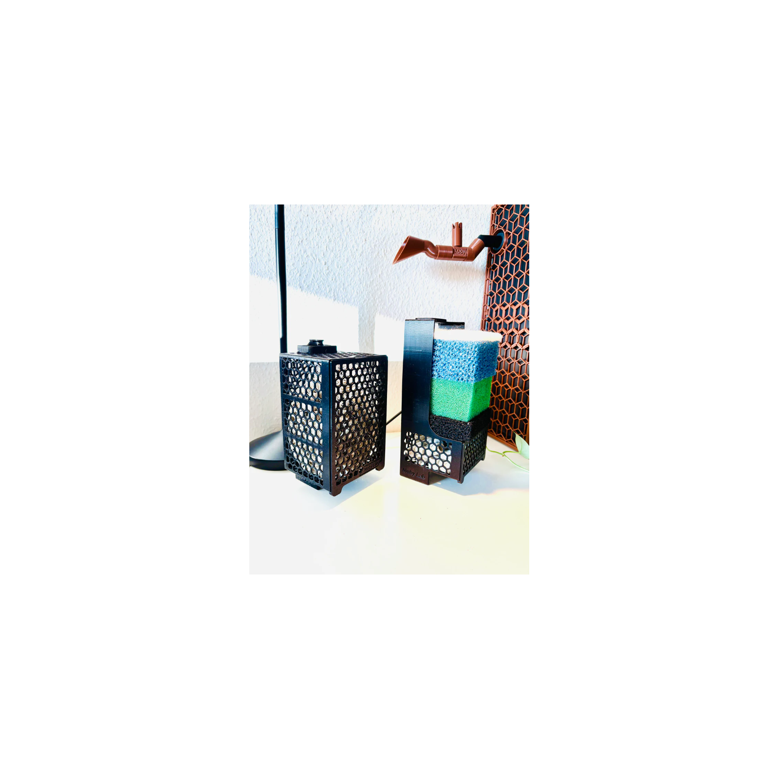 • Il attrape fermement les éponges filtrantes et confortablement.