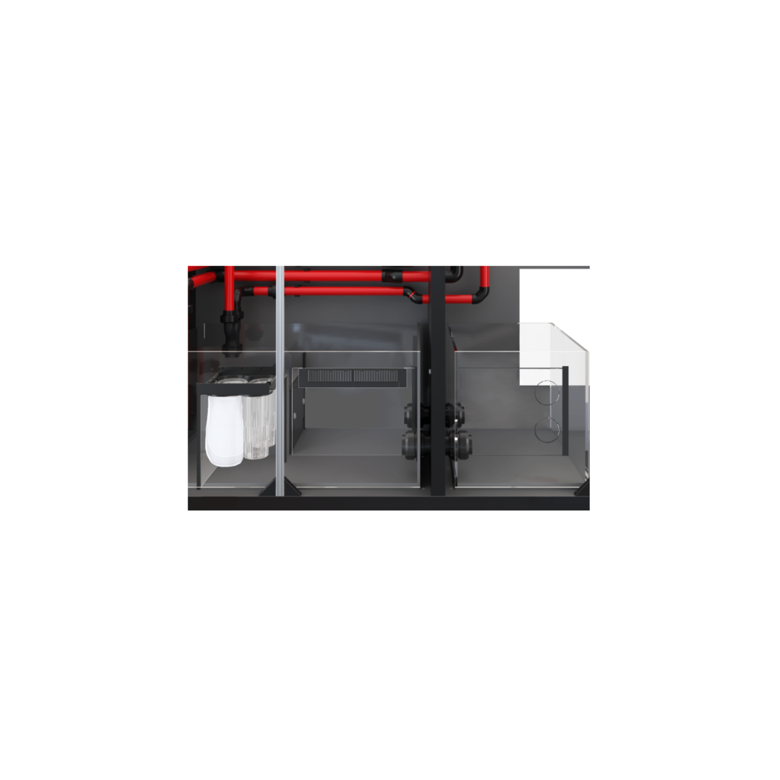Ces dimensions rendent le système idéal pour le récif avec des coraux mous, des LPS et des SP, le maintien de bonnes stabilité chimique et biologique.