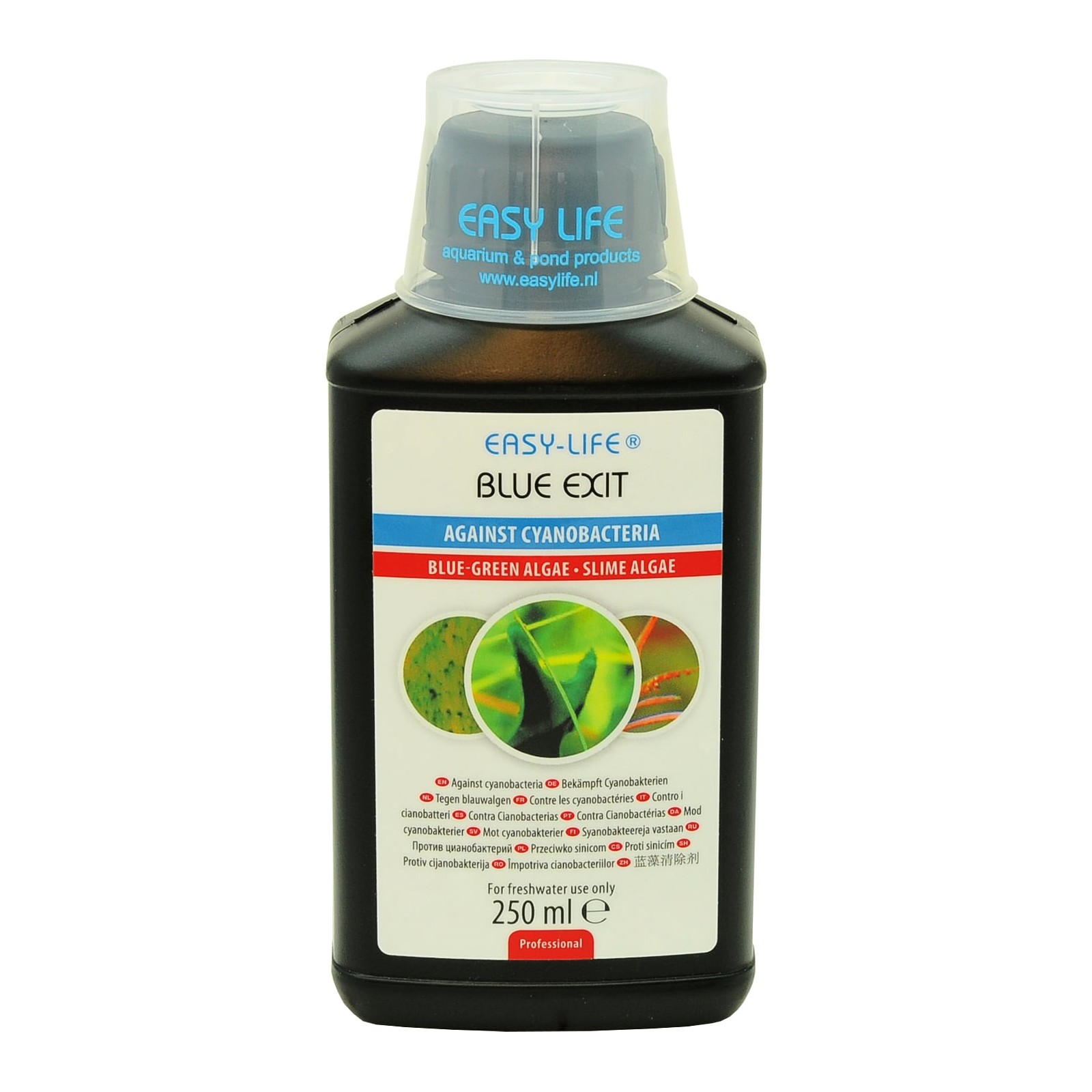 Sans l'utilisation d'antibiotiques ou de composés contenant du cuivre, avec une sortie bleue, il est possible d'éliminer les algues bleu-vert (cyanobacteria) pour empêcher l'eau propre. Les algues bleu-vert sont souvent causées par une infection, un métabolisme bactérien non équilibré, un sol lourd pollué ou un faible niveau de nitrates. La sortie bleue combats efficacement cyanobactéries, il est facile à utiliser et est inoffensif pour le poisson, la crevette, les escargots ou les plantes. Si l'infestation est cohérente, le produit peut être administré pendant quelques jours consécutifs, même à des doses doublées.