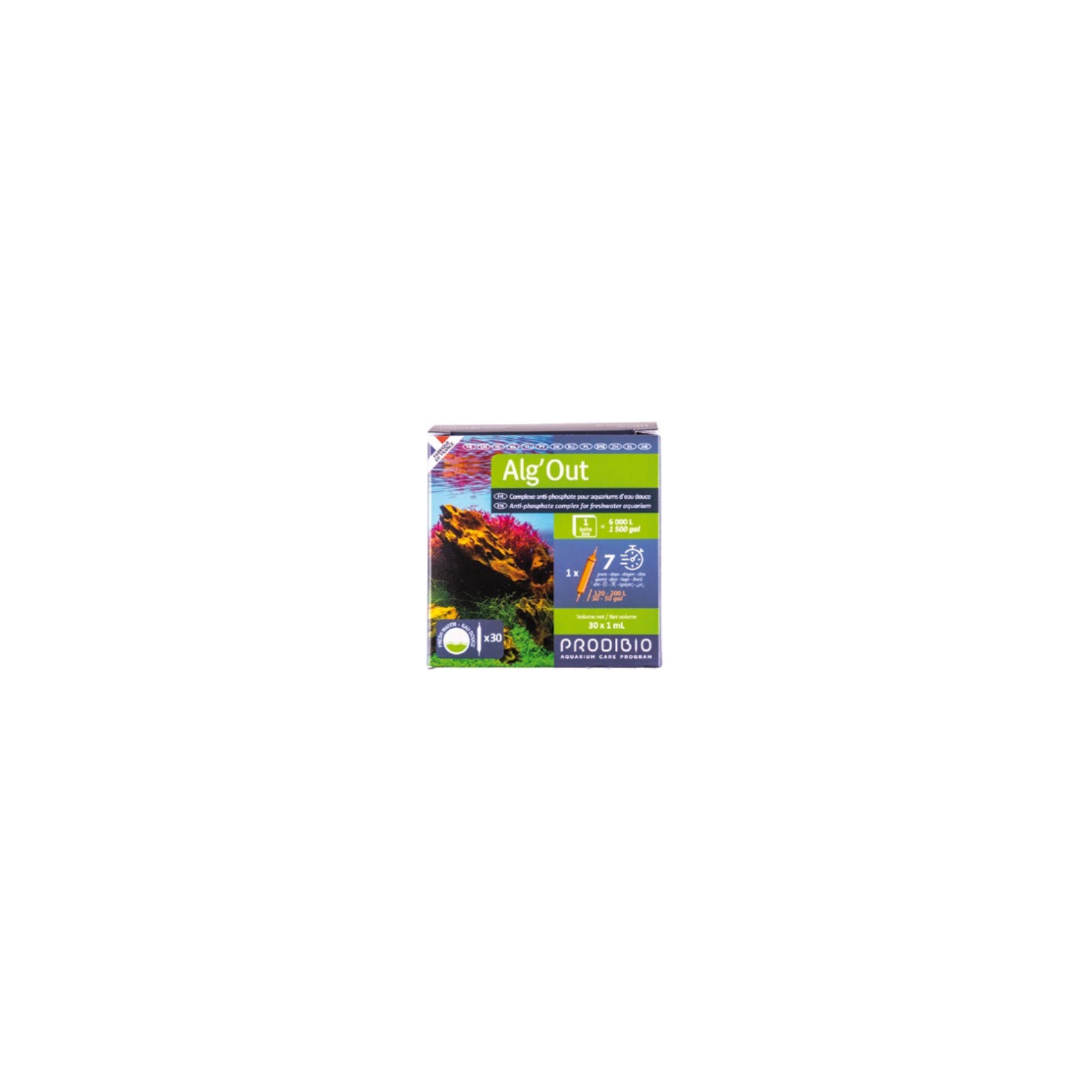 Alg'out neutralise les phosphates présents dans de l'eau douce et ne les rend plus disponibles