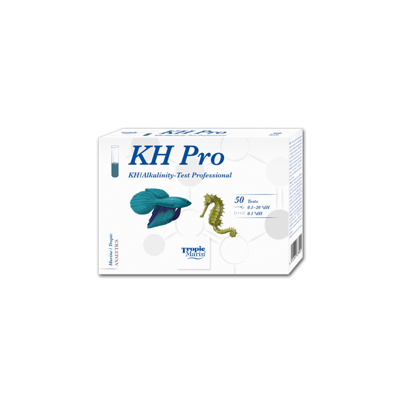 Le nouveau test professionnel KH de Tropic Marin C'est l'un des plus précis et vous permet de déterminer la valeur de KH avec une résolution allant jusqu'à 0,1 ° DH.