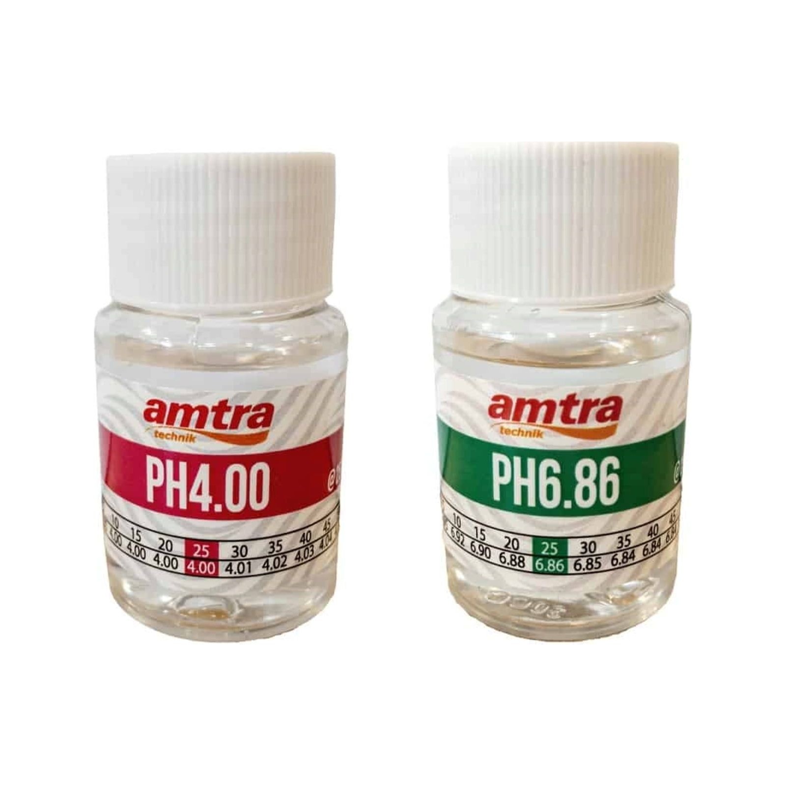 - Ce kit contient deux solutions pour calibrer des testeurs numériques de pH. Les deux bouteilles sont remplies chacune avec 25 ml de solution d'étalonnage: une pour pH 4,00 et une pour pH 6,86.