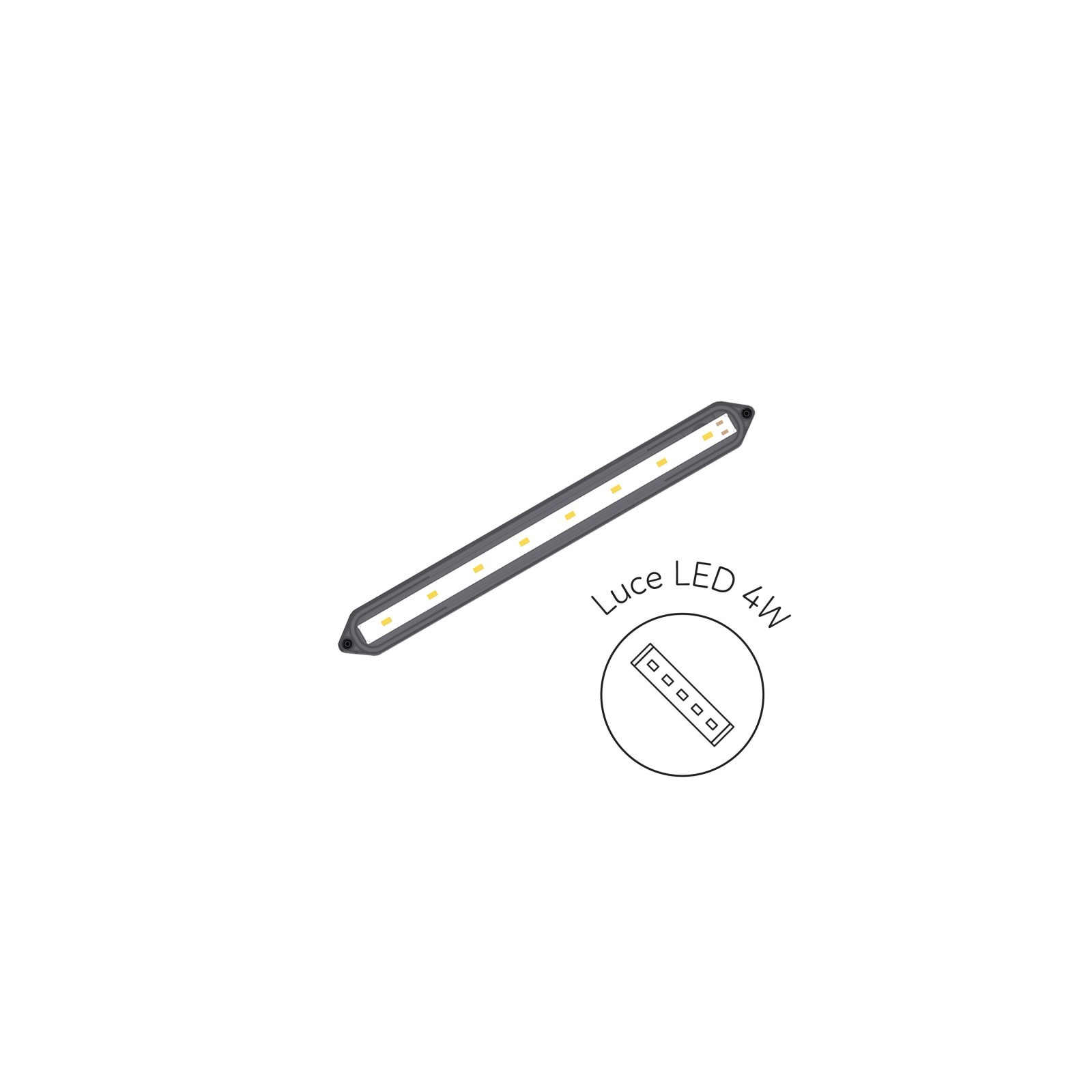 L'éclairage, composé de 8 LEDX0.5 W avec une température de couleur de 8500 ° K, est idéal pour améliorer la coloration des poissons et encourager la croissance des plantes.
