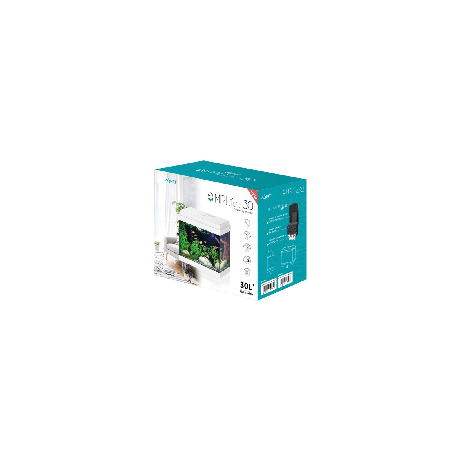 AQPET a simplement mené 30 aquariums ensemble complet avec lumière LED et filtre 30L