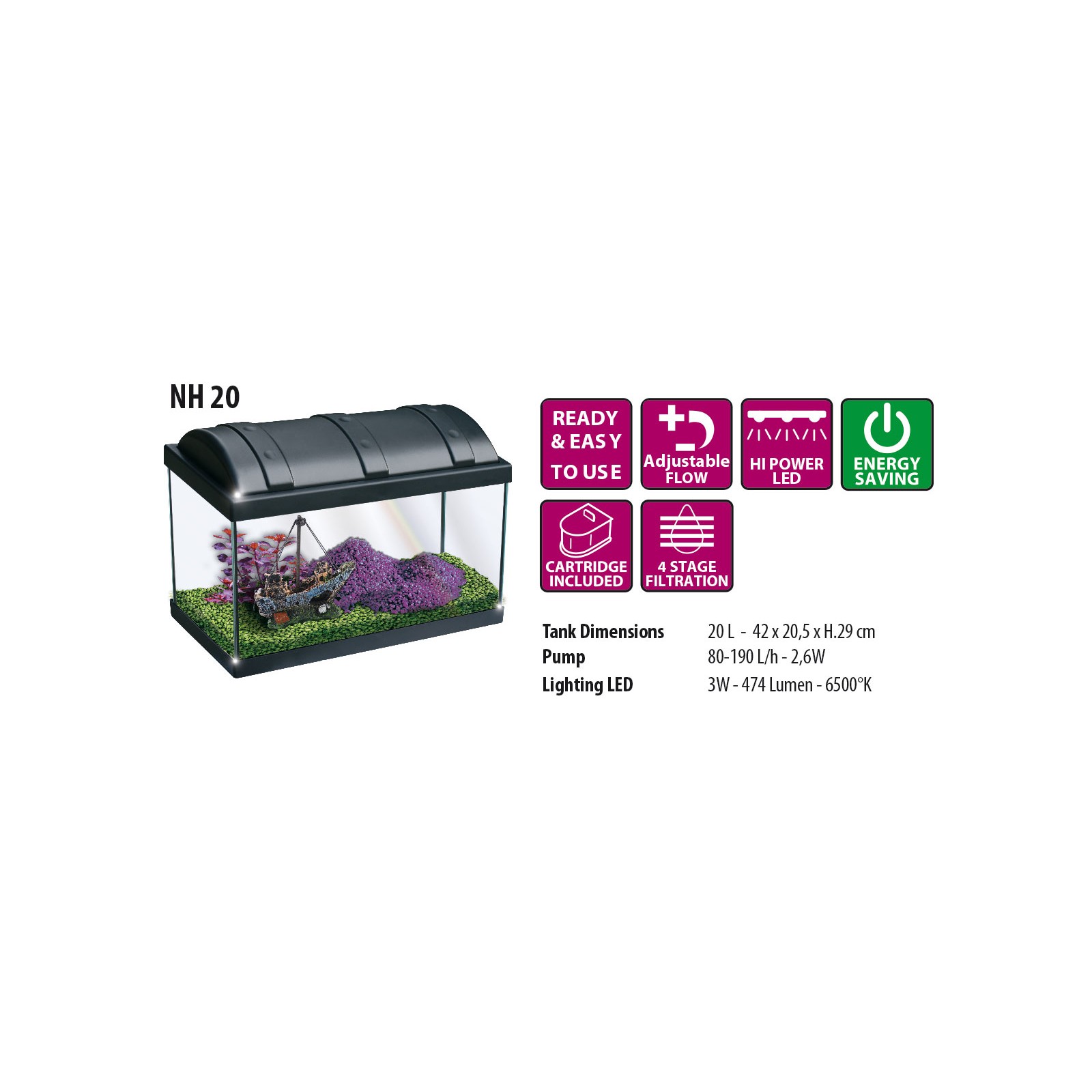 Newa Hobby Aquarium en cristal noir et noir pour novice