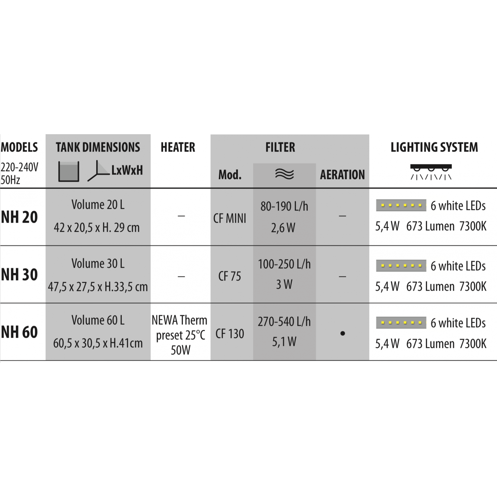 - Système d'aération intégré dans le filtre (uniquement mod. NH 60)