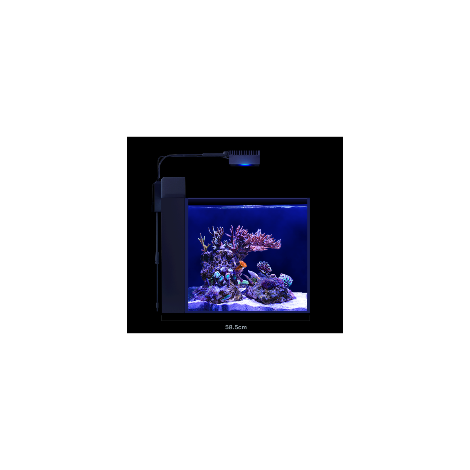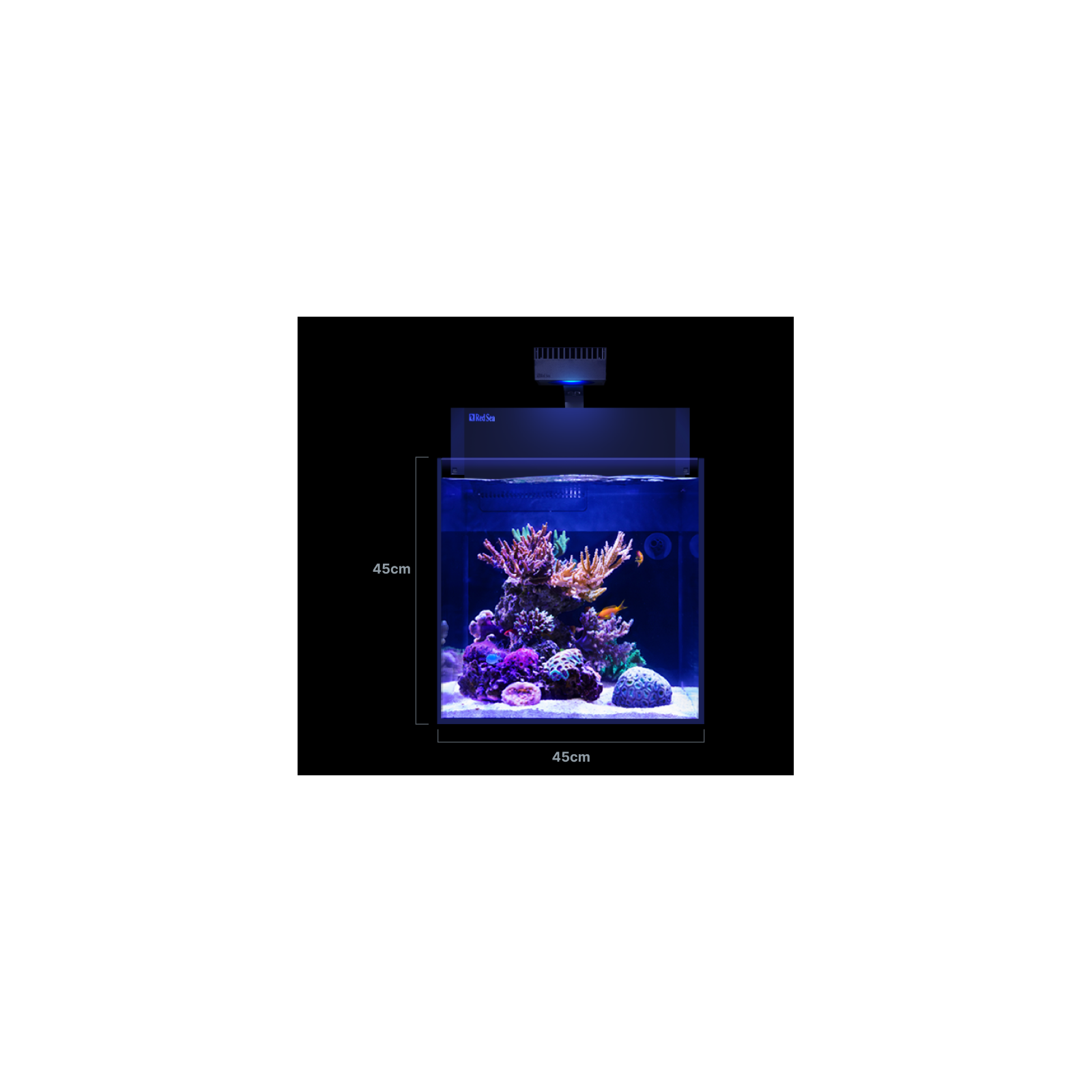Max nano est illuminé par réactif 50 Red Sea , dont l'intensité et le spectre sont utilisés à 100% des coraux, garantissant une croissance optimale et une coloration des coraux. De plus, Refledled 50 est équipé d'un canal lunaire pour fournir de faibles niveaux de lumière pour la vision nocturne sûre des coraux