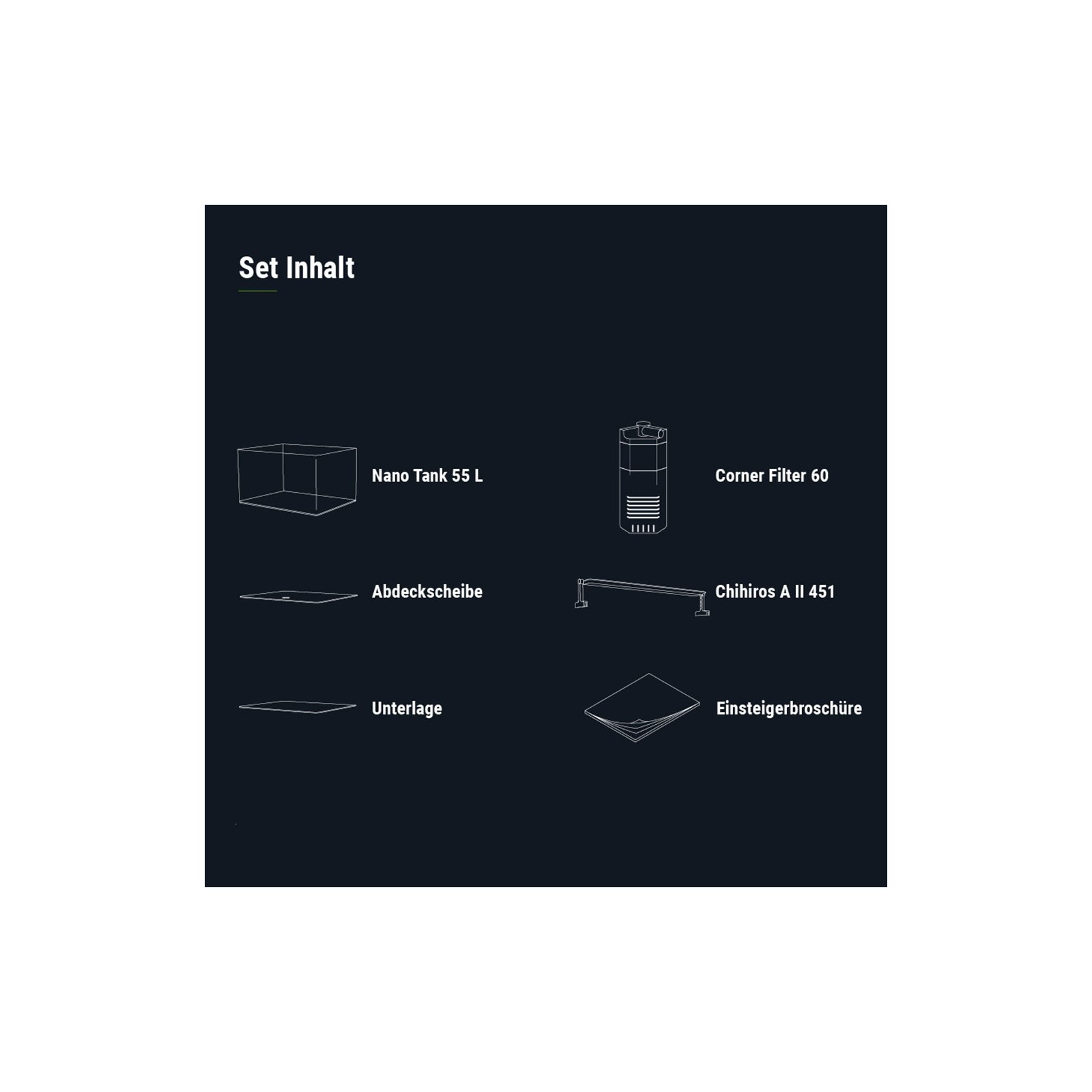 Design moderne et compact combiné à la tradition et à la qualité. C'est ce que les aquariums Dennerle Ils se combinent avec des nano-cubes et des réservoirs Nano. La conception compacte vous permet de vivre un morceau de nature dans votre maison, même dans un espace réduit. Un point culminant visuel pour chaque chambre, également grâce aux coins arrondis, qui permettent une vue panoramique de l'aquarium. Modélisé de la scène de la scène de stock, une création complètement nouvelle émergée: le Dennerle Nano Tank. Effet de profondeur spécial: c'était l'objectif que nous avions défini nous-mêmes, que nos Nano Chavers créent à travers leurs proportions. En collaboration avec Chihiros, l'ensemble technologique de la série Nano Tank Plante Pro comprend Chihiros A II de manière adéquate, en plus de notre filtre interne testé.