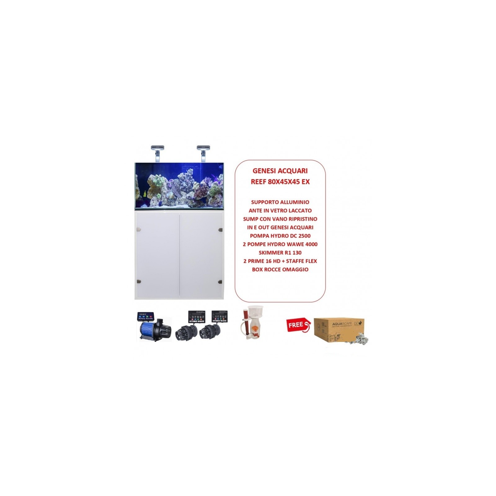 Marino Aquarium 160 L Reef Plus 80x45x45 cm complet avec technique - Verre extra-clair avec puisard et support Genesi