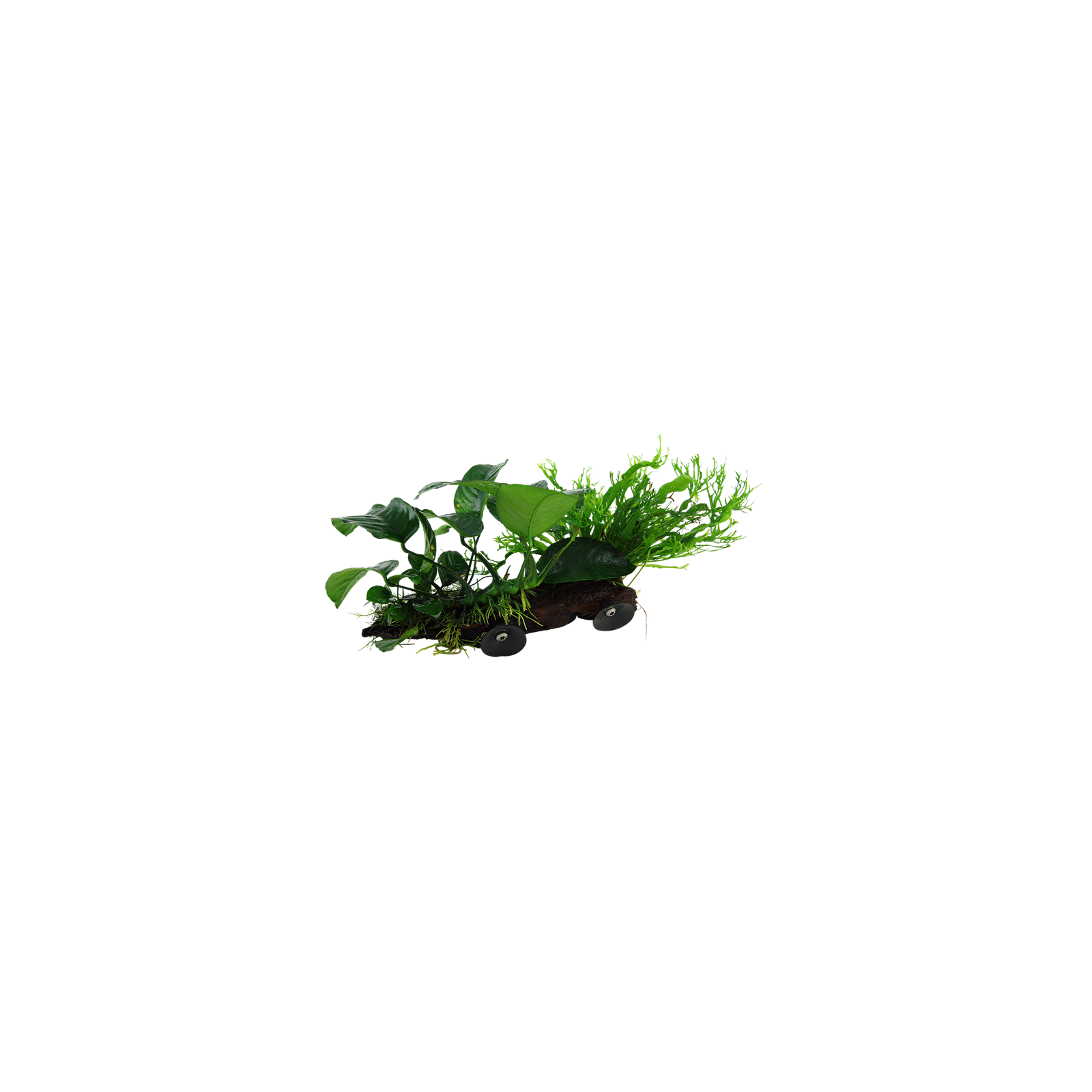 Bank Wood Ornamentall a deux plantes cultivées sur un morceau de bois avec des ventouses à placer contre la paroi du verre.