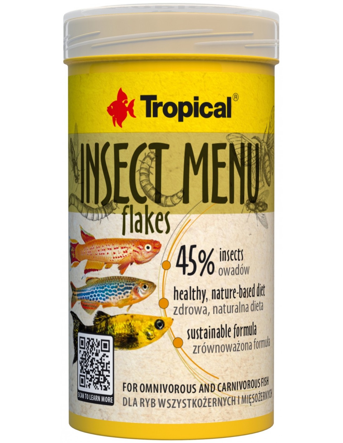 Utilisation régulière de Tropical Menu d'insectes Les flocons accélèrent la croissance, renforce l'immunité, ajuste la digestion et réduit la quantité de déchets métaboliques de poisson qui polluent l'eau.