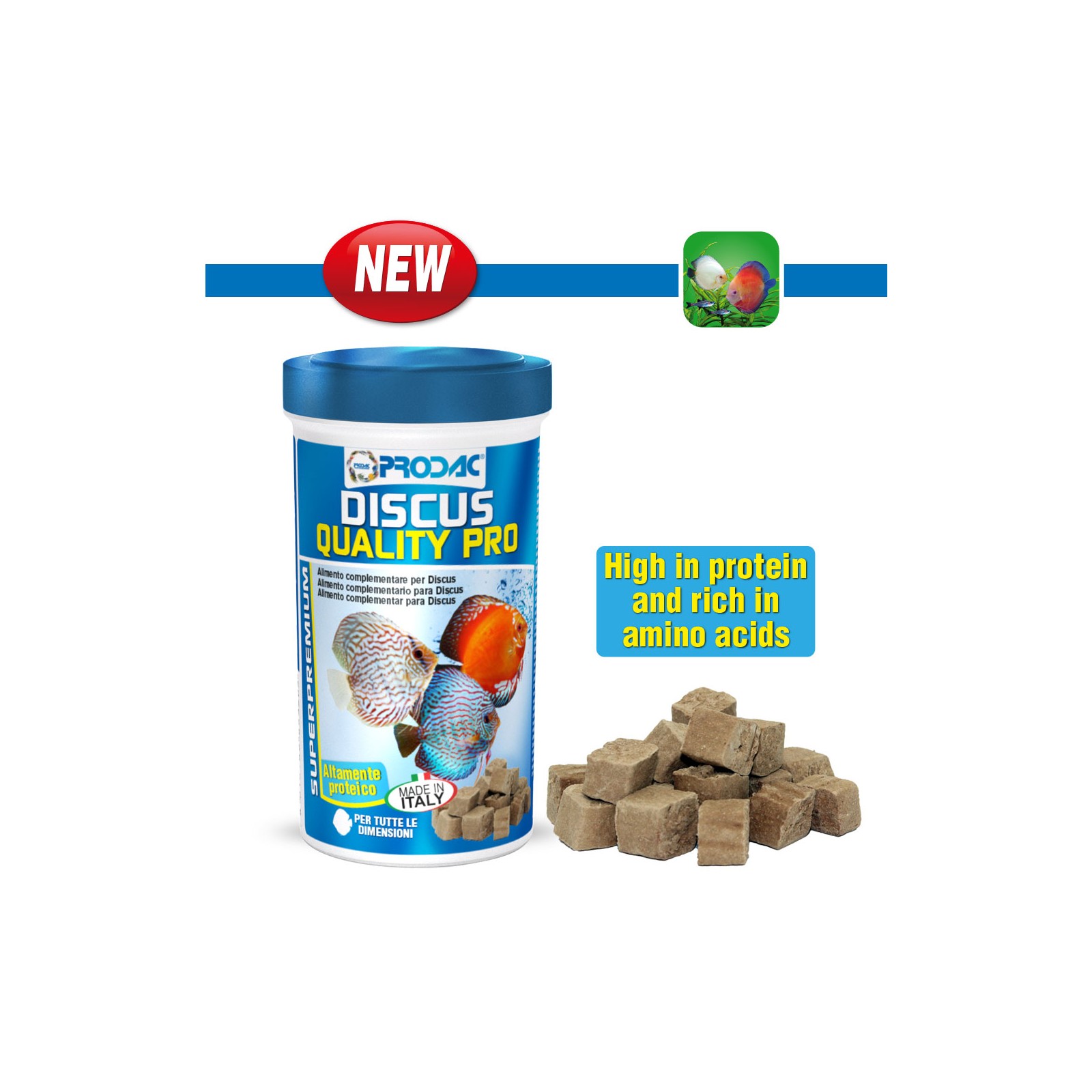 Quality Pro est un aliment approprié adapté au discus de toutes les variétés, il est conseillé de l'administrer avec des flocons de Spiolina Prodac, des bits, de la prodac Artemia et du Biogran de PRODAC à des semaines alternées avec d'autres aliments.