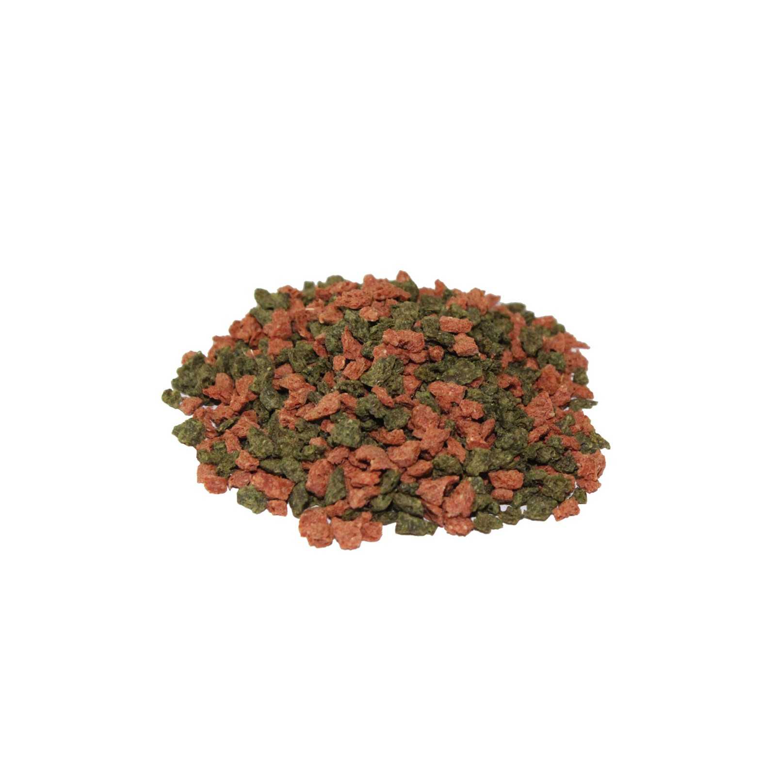 Food composé dans des granules pour toutes sortes de poissons d'aquarium de taille moyenne d'eau douce, particulièrement adapté aux cichlidés. Composition: poisson et sous-produits de poisson, de céréales, de soja, de crustacés, de levures, de légumes, d'algues.