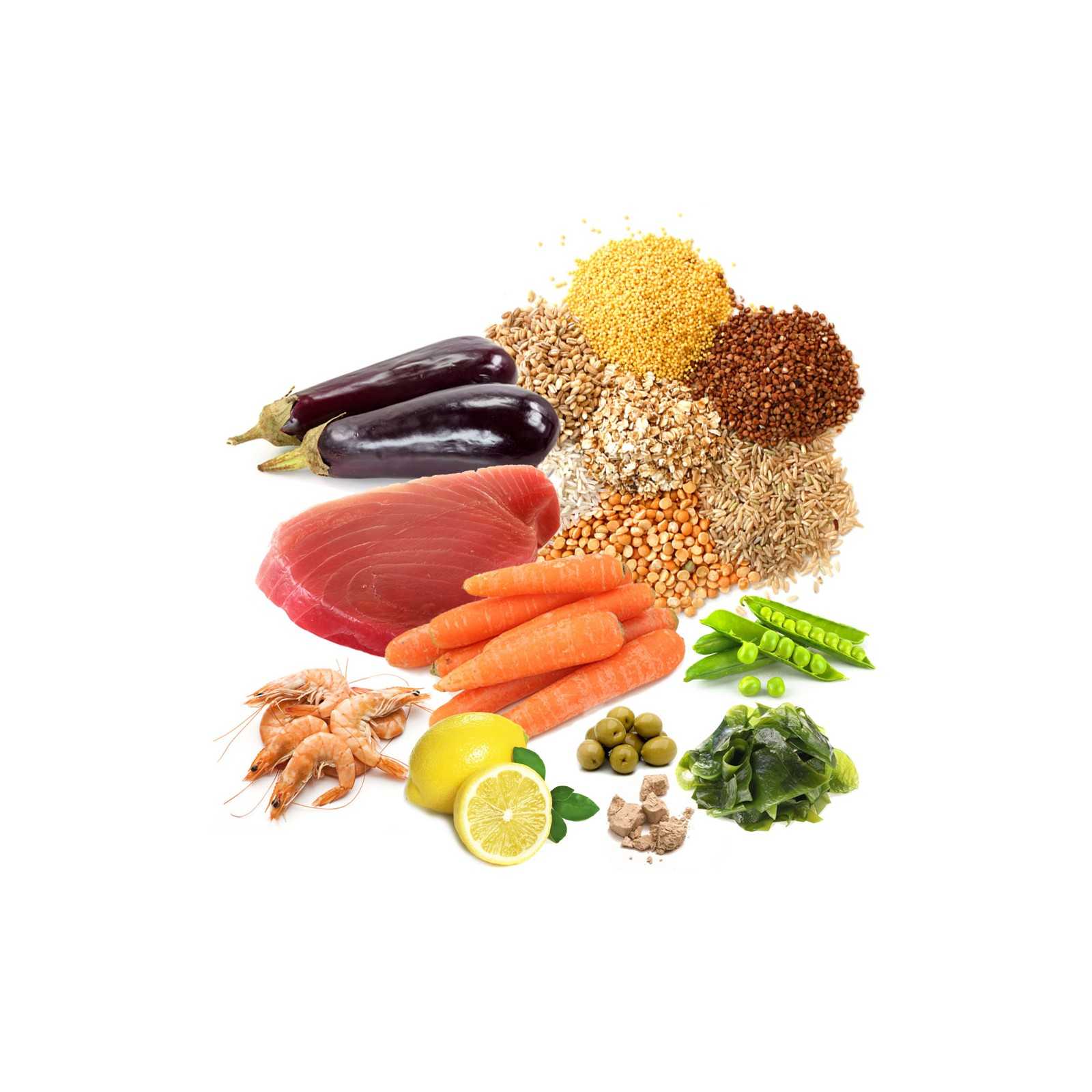 Ingrédients principaux: farines de poisson et dérivés, céréales sélectionnées, huiles végétales et graisses et graisses marines, levures, substances minérales, vitamines et oligo-éléments.