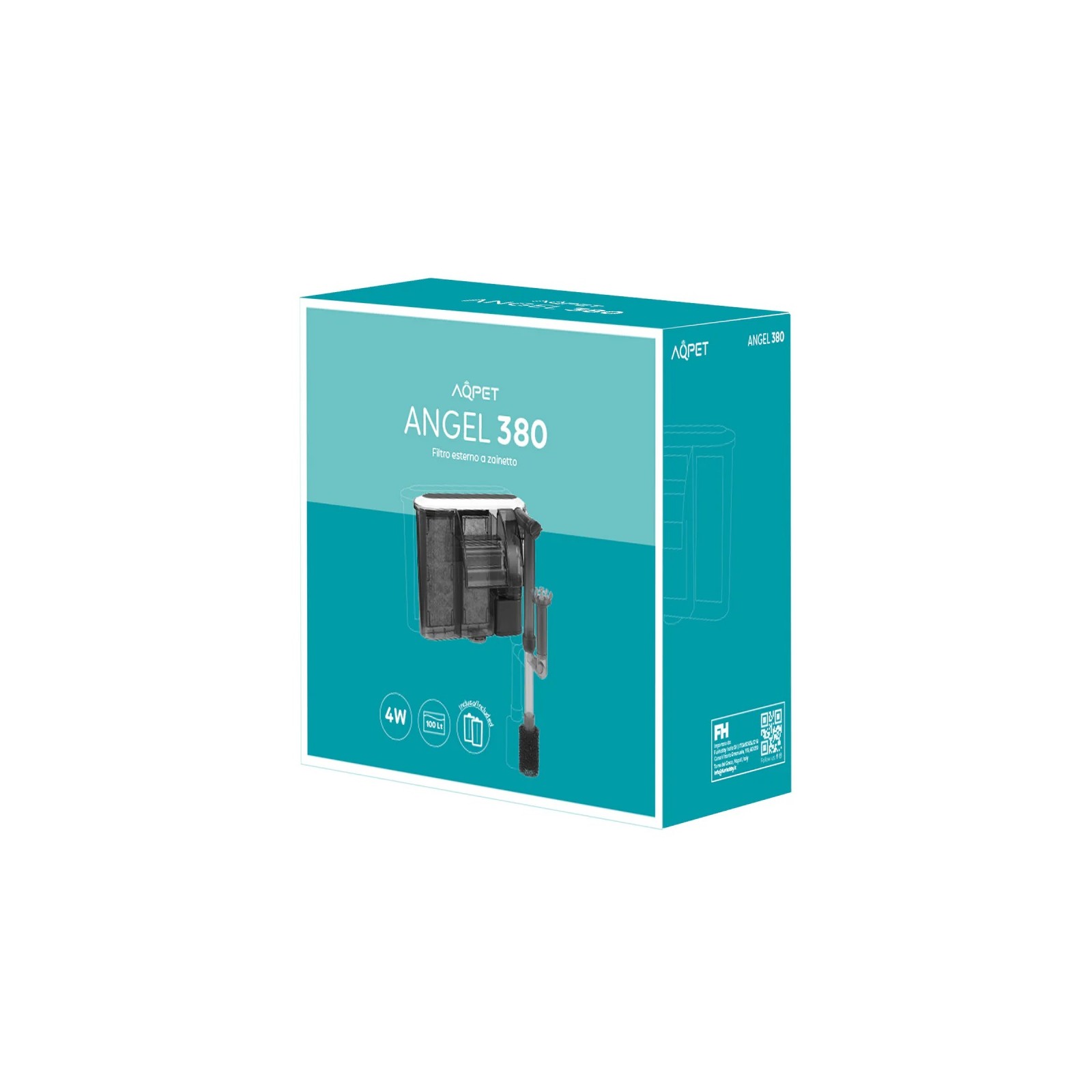 AQPET Angel 380 Il s'agit d'un filtre à la cascade (suspendu) conçu pour offrir une filtration efficace et une excellente oxygénation dans les aquariums jusqu'à 100 litres.