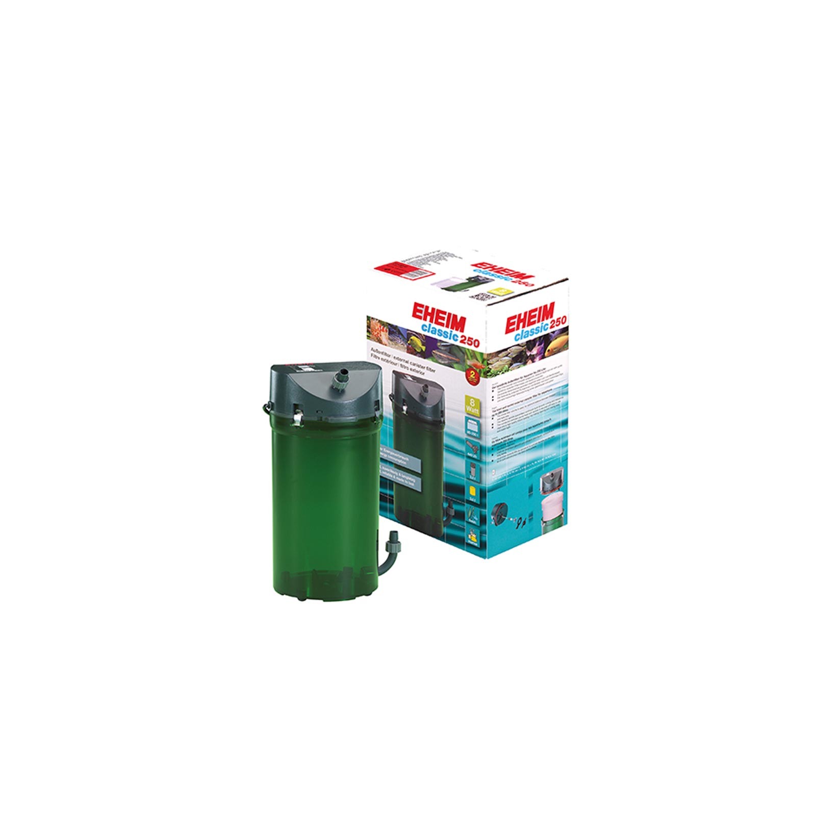 Filtre Eheim Modèle standard, adapté aux aquariums d'eau douce et marine, technologie éprouvée, rendement optimal, fiabilité extrême et efficacité sont les caractéristiques qui contractent le filtre externe «légendaire» Eheim Classic.