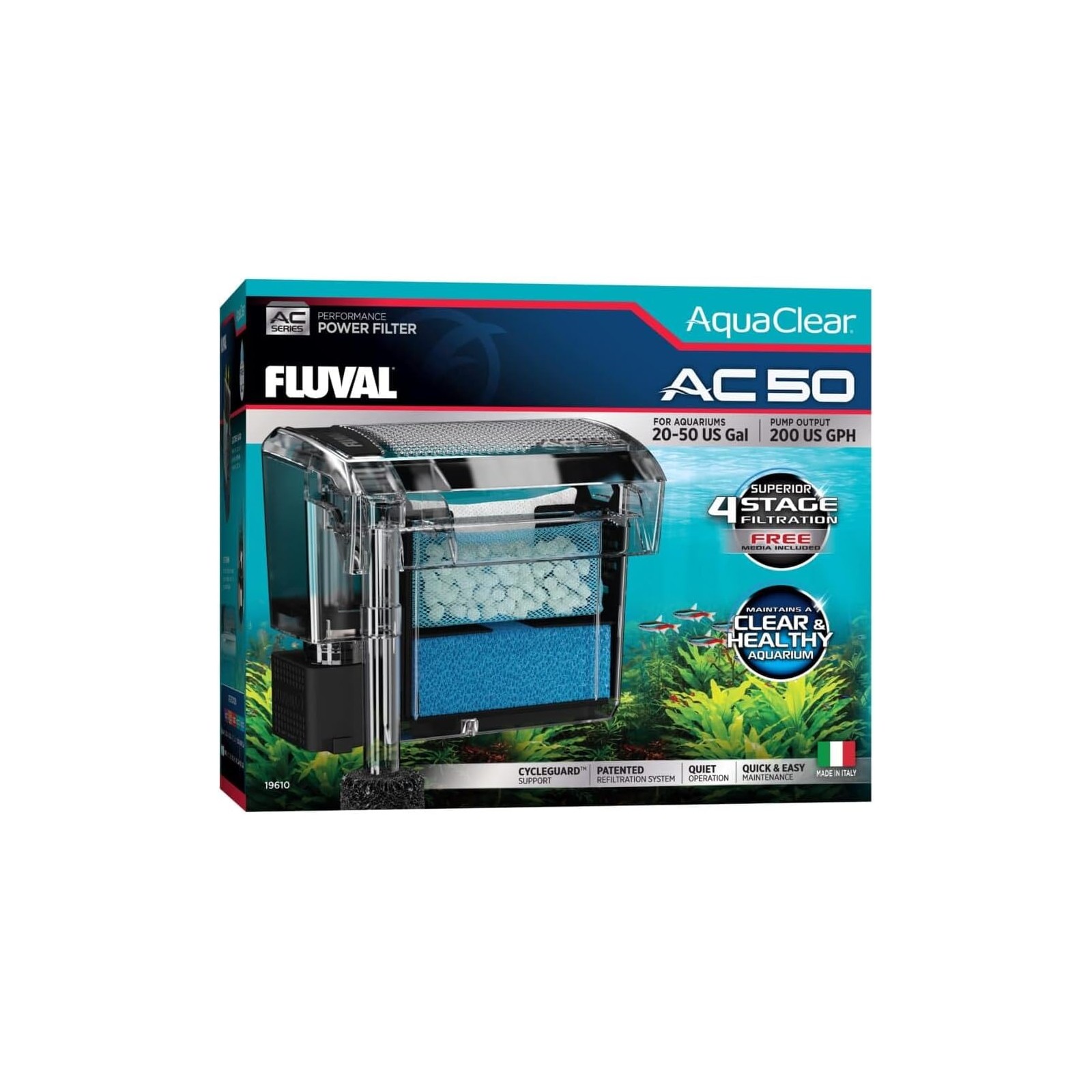 Système de filtrage breveté pour un aquarium sain et une eau propre. Gardez les bactéries bénéfiques pour un environnement sain dans l'aquarium. Les bactéries bénéfiques invisibles et inoffensifs sont essentielles pour éliminer l'ammoniac et les nitrites toxiques. Avec le système de filtrage Aqua Clear, il suffit parfois de remplacer l'une des trois cartouches de filtrage. Après cette procédure, une filtration biologique très efficace est obtenue.