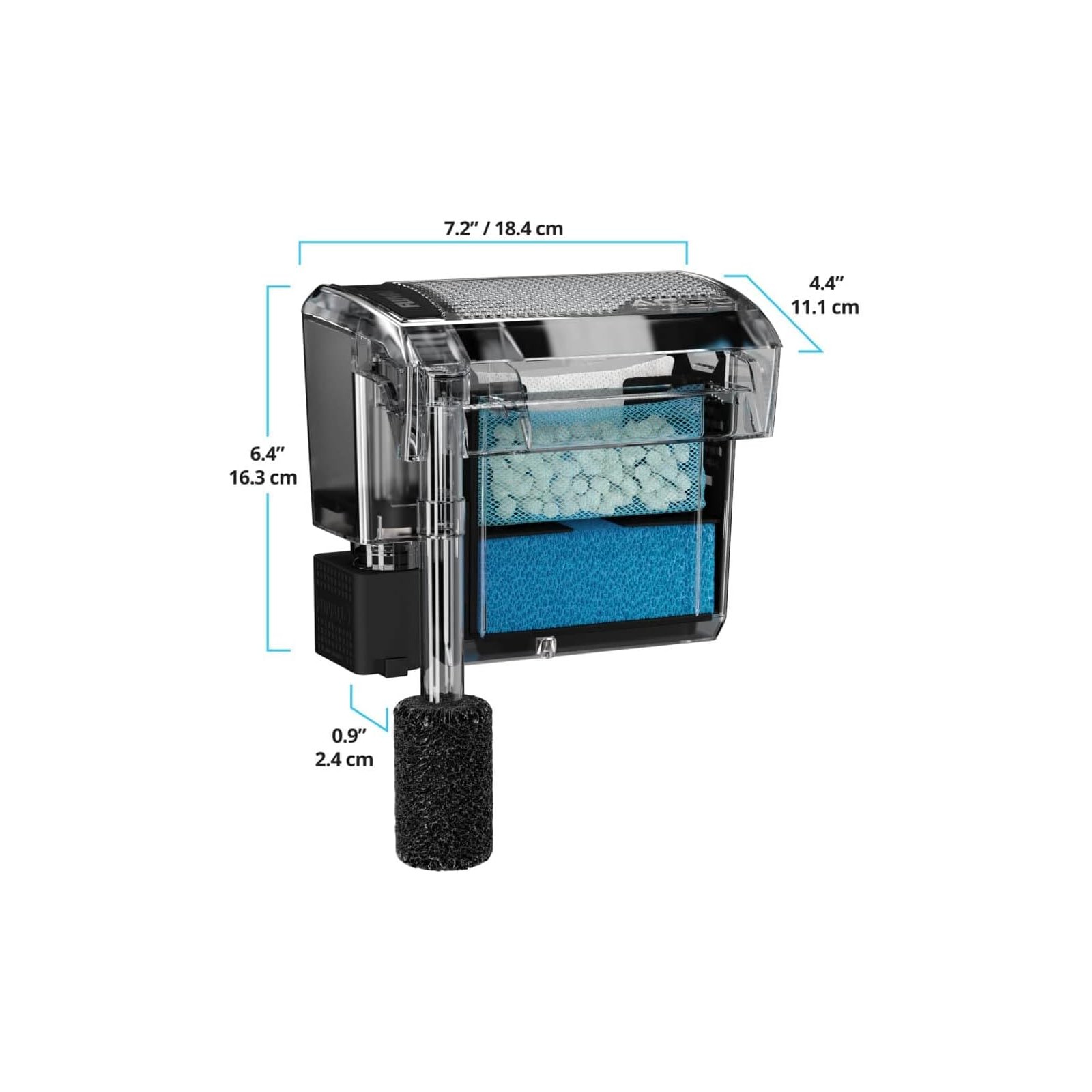 Le système de filtration breveté étend le temps de contact avec le matériau filtrant d'un aquarium plus propre, plus sain et plus stable d'un point de vue biologique.