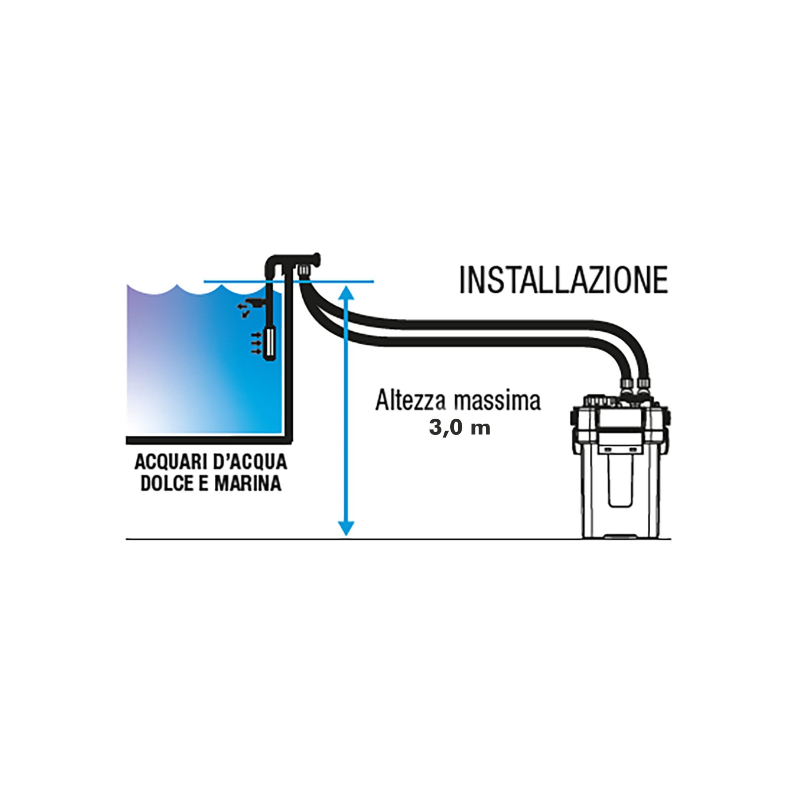 Le filtre offre une capacité maximale de 2.150 l / h Conduit par un moteur 32 W; La prévalence maximale accessible est 3 m, permettant aux installations avec des différences modérées entre les unités et la baignoire.