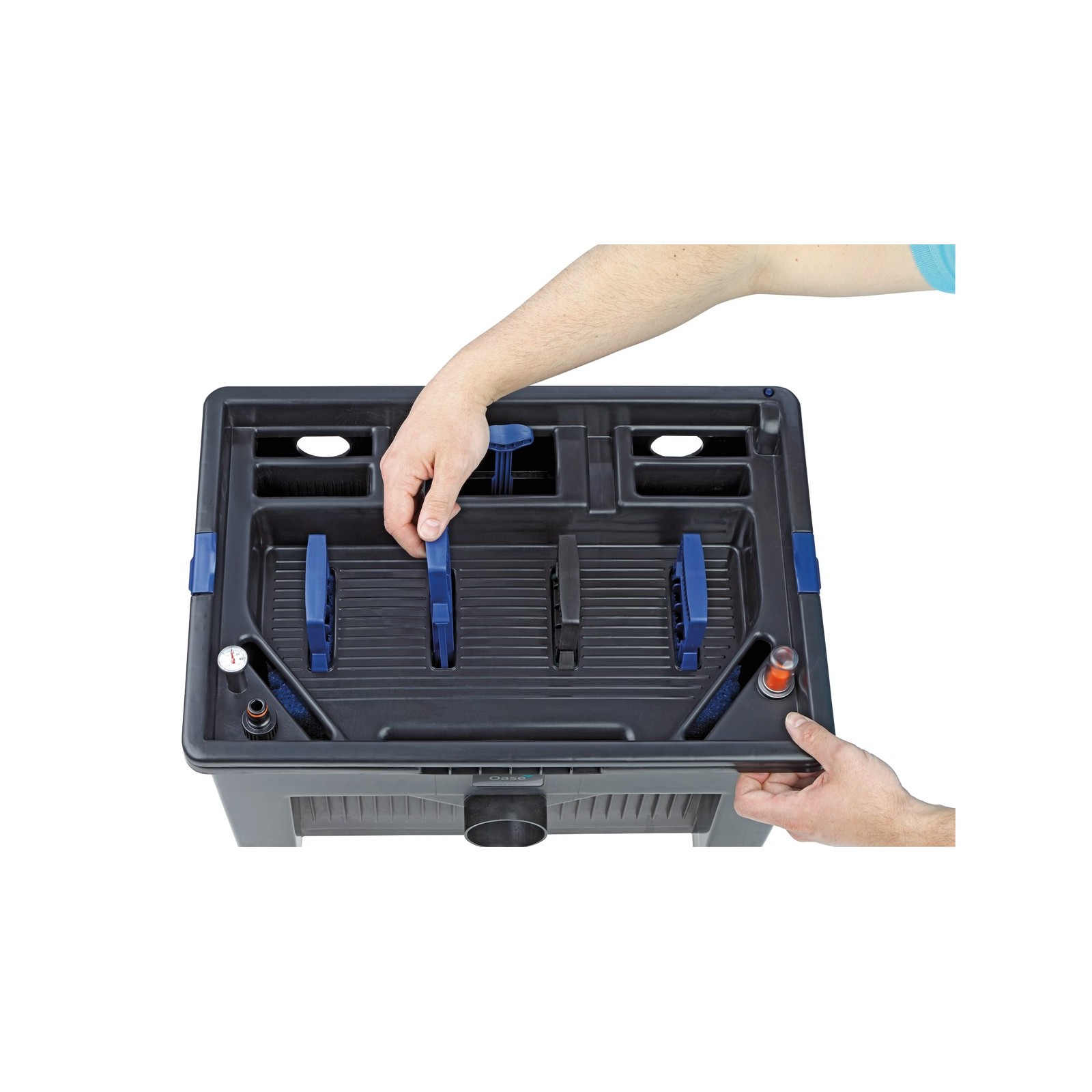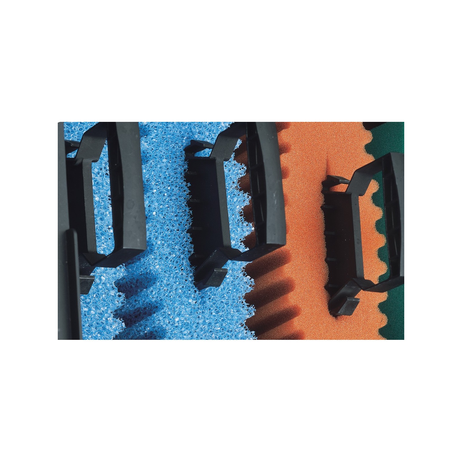 La combinaison de la mousse de filtrage et de précision Uvc Intégration offre les meilleures performances de filtrage: les différentes éponges de filtrage permettent un filtrage mécanique et biologique optimal.