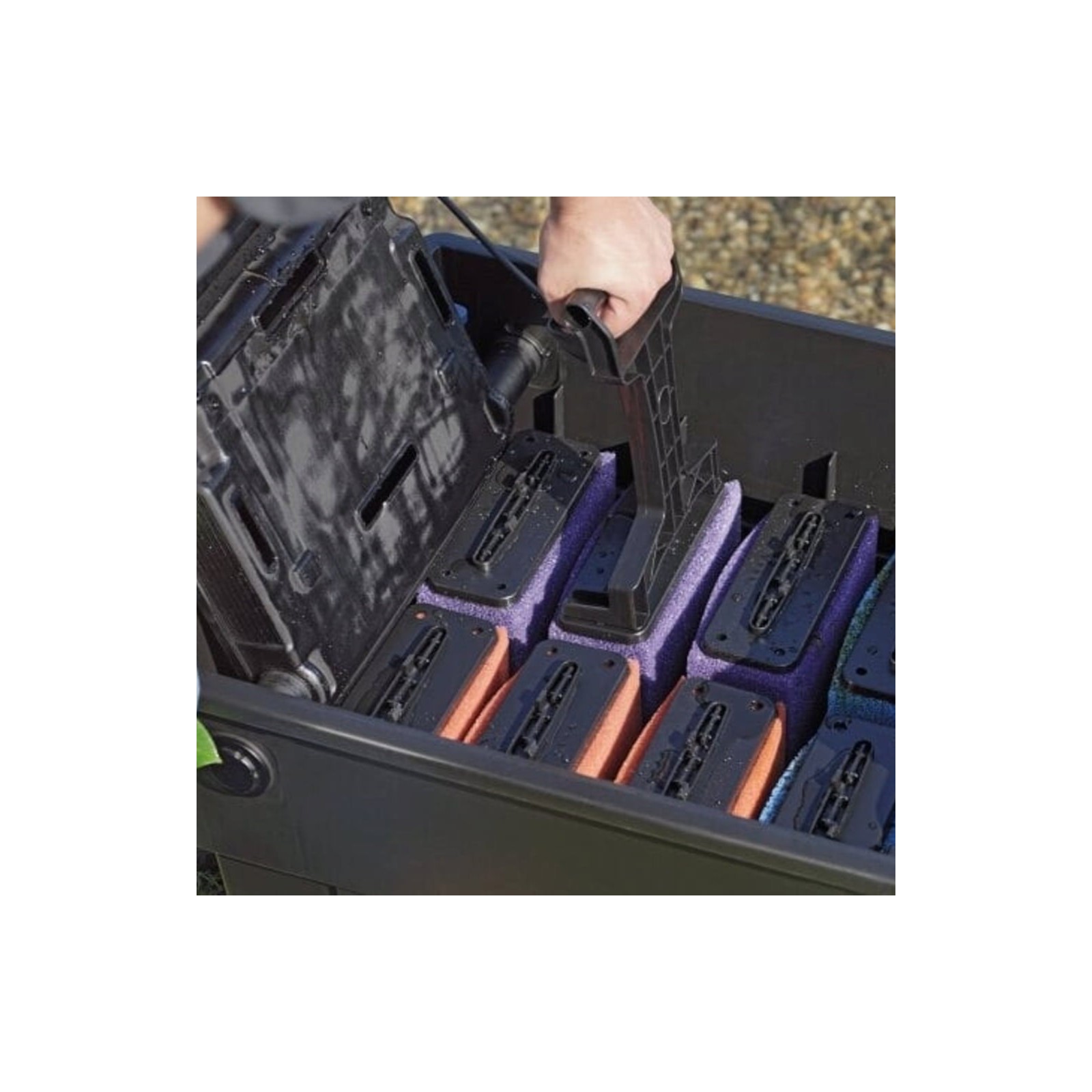 Les éponges rouges / violettes complètent la séquence de filtres des systèmes scabrictanés Biotec, contribuant à une purification complète et stable, des résultats visibles en termes de clarté et de santé de l'eau.