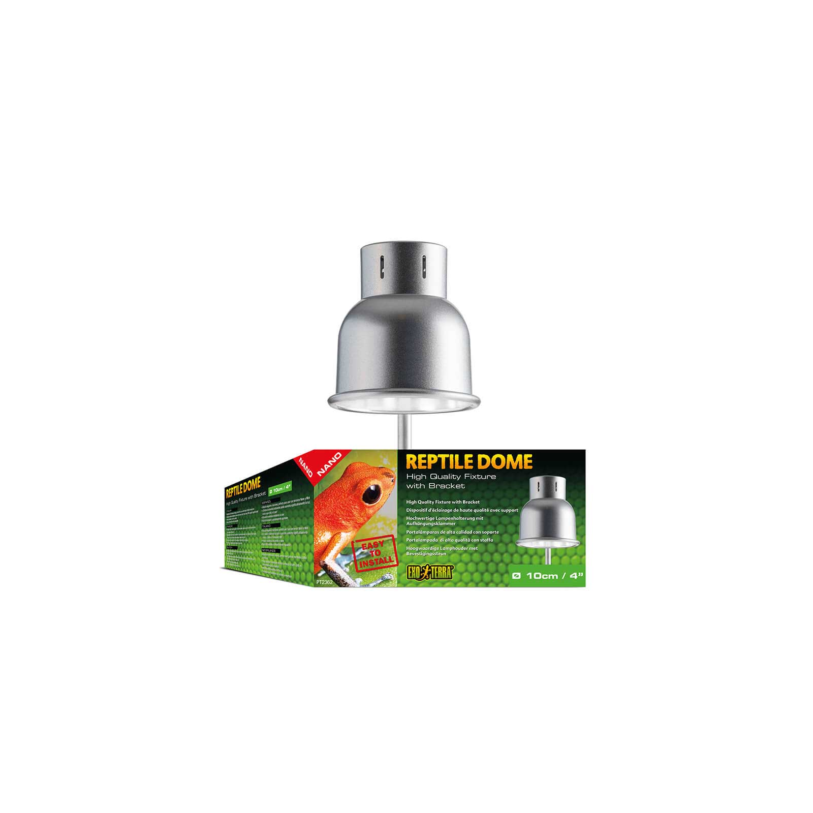 Le dôme de Nano Reptile de EXO Terre est un porte-lampe compact et de haute qualité, idéal pour de petits terrariums tels que les modèles nains ou mini-mini. Équipé d'un bras réglable élégant avec support adhésif, il vous permet d'orienter et d'ajuster la distance de la lampe pour obtenir la température idéale au point de prélèvement.