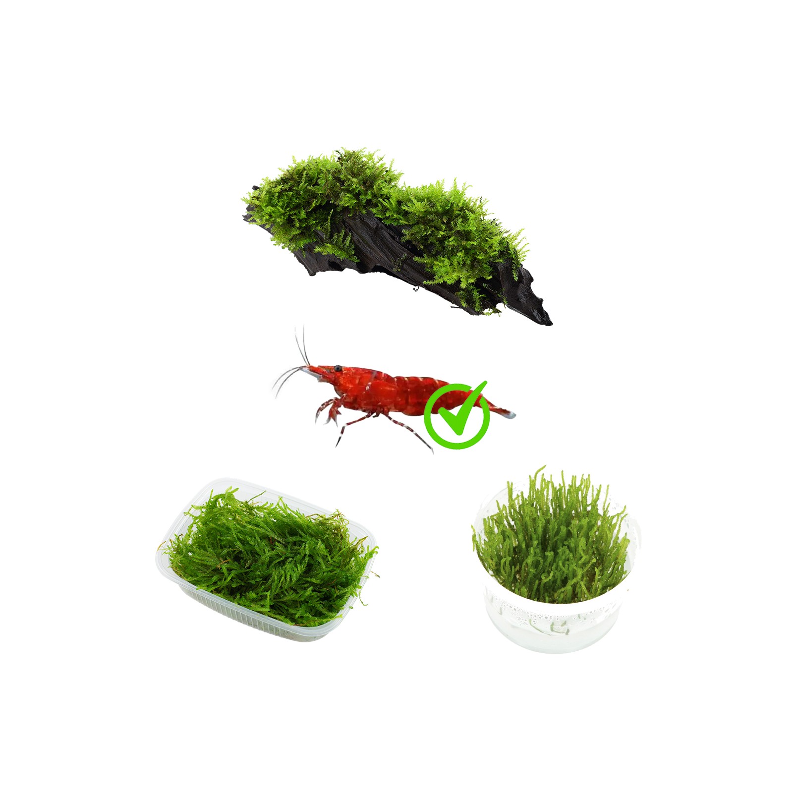 Kit 3 Muschi pour 30 litres caridinaio | Mousse de Noël sur bois - Flame Moss - Mousse en pleurant