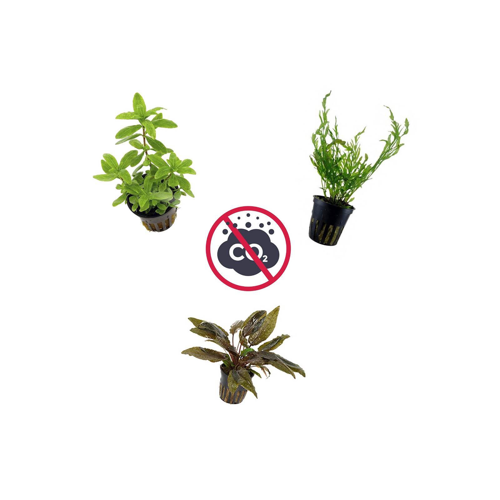 Le kit de 3 plantes sans CO₂ est conçu pour ceux qui veulent un aquarium luxuriant et naturel sans avoir besoin de plantes de dioxyde de carbone.