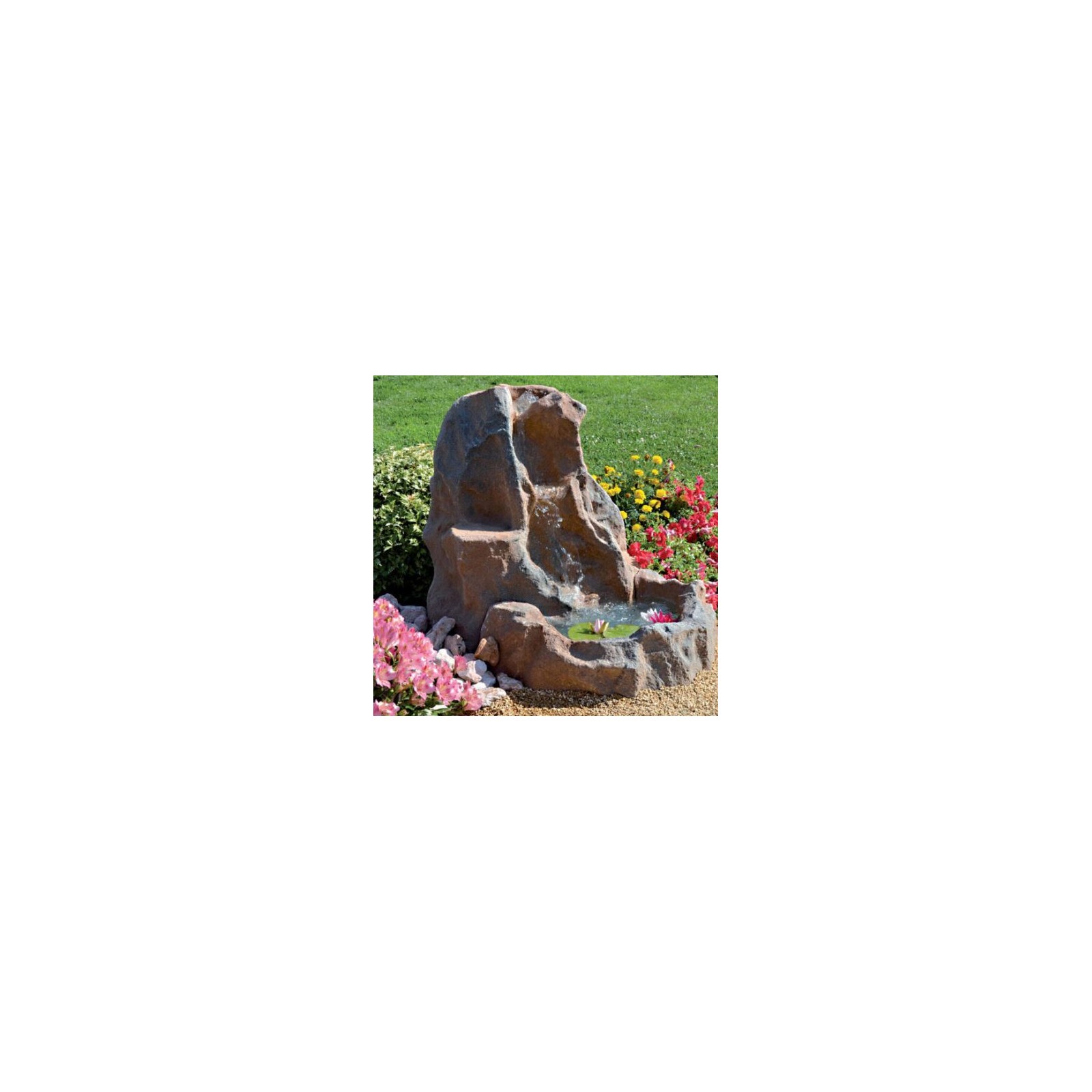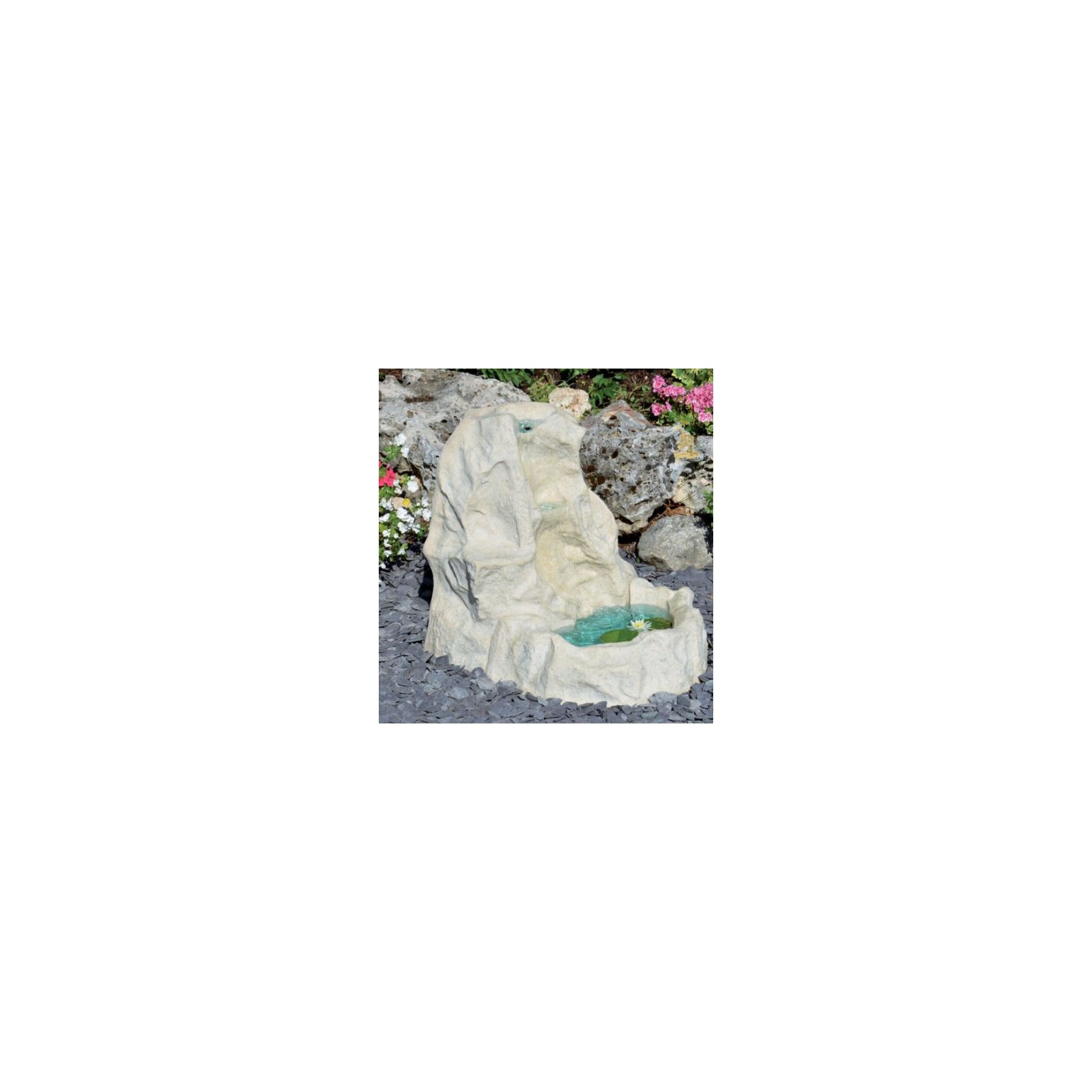 Cette cascade est fournie avec une pompe de recirculation, aucune connexion au système d'eau n'est donc nécessaire.