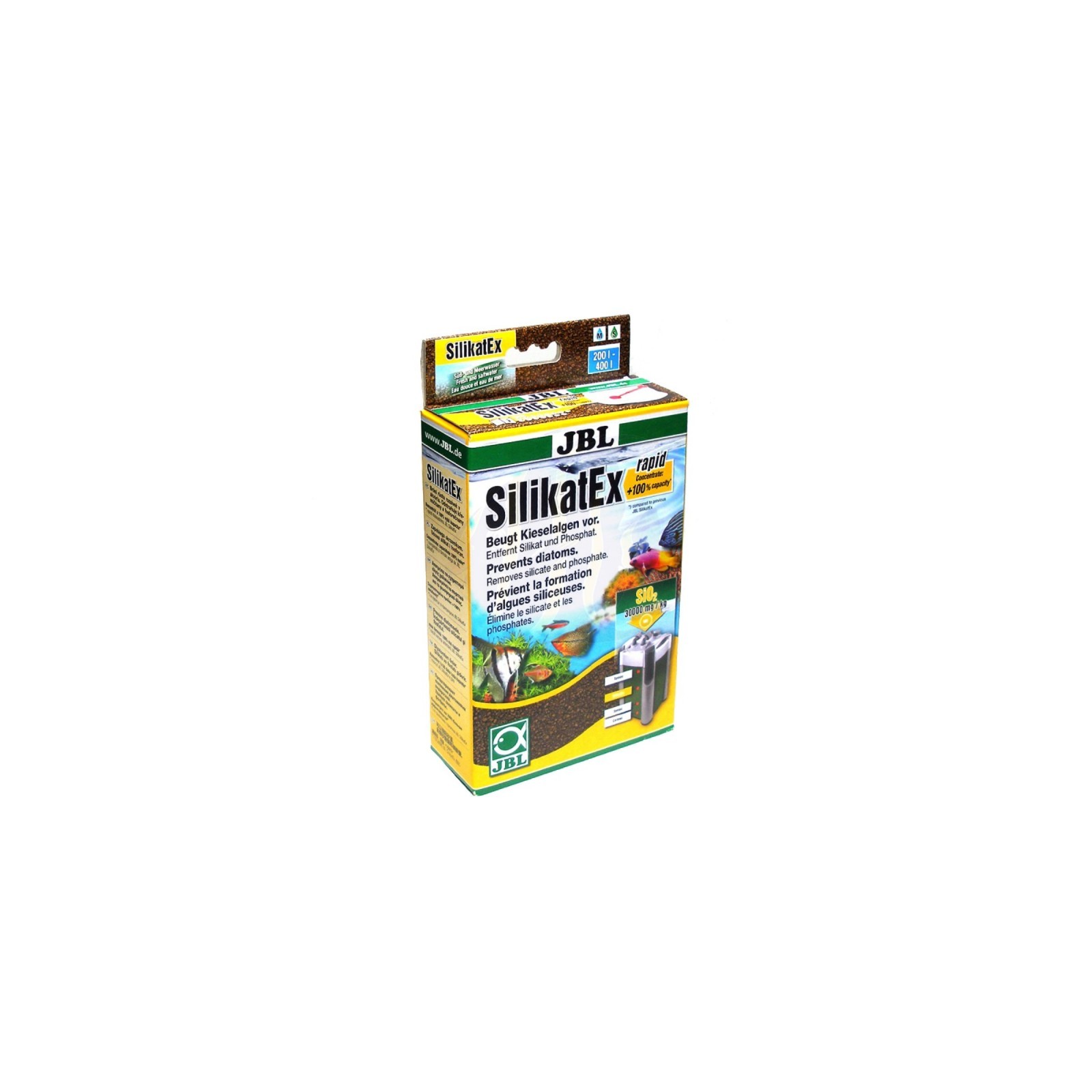Silikatex élimine les silicates des aquariums d'eau douce et de marine, privant les diatomes indésirables (plaques brunes), qui apparaissent souvent après avoir ajouté de l'eau douce, leurs ressources alimentaires. Silikatex élimine également les phosphates, notamment en contrôlant la croissance des autres algues. Le matériau filtrant crée des conditions de vie comme dans un biotope.