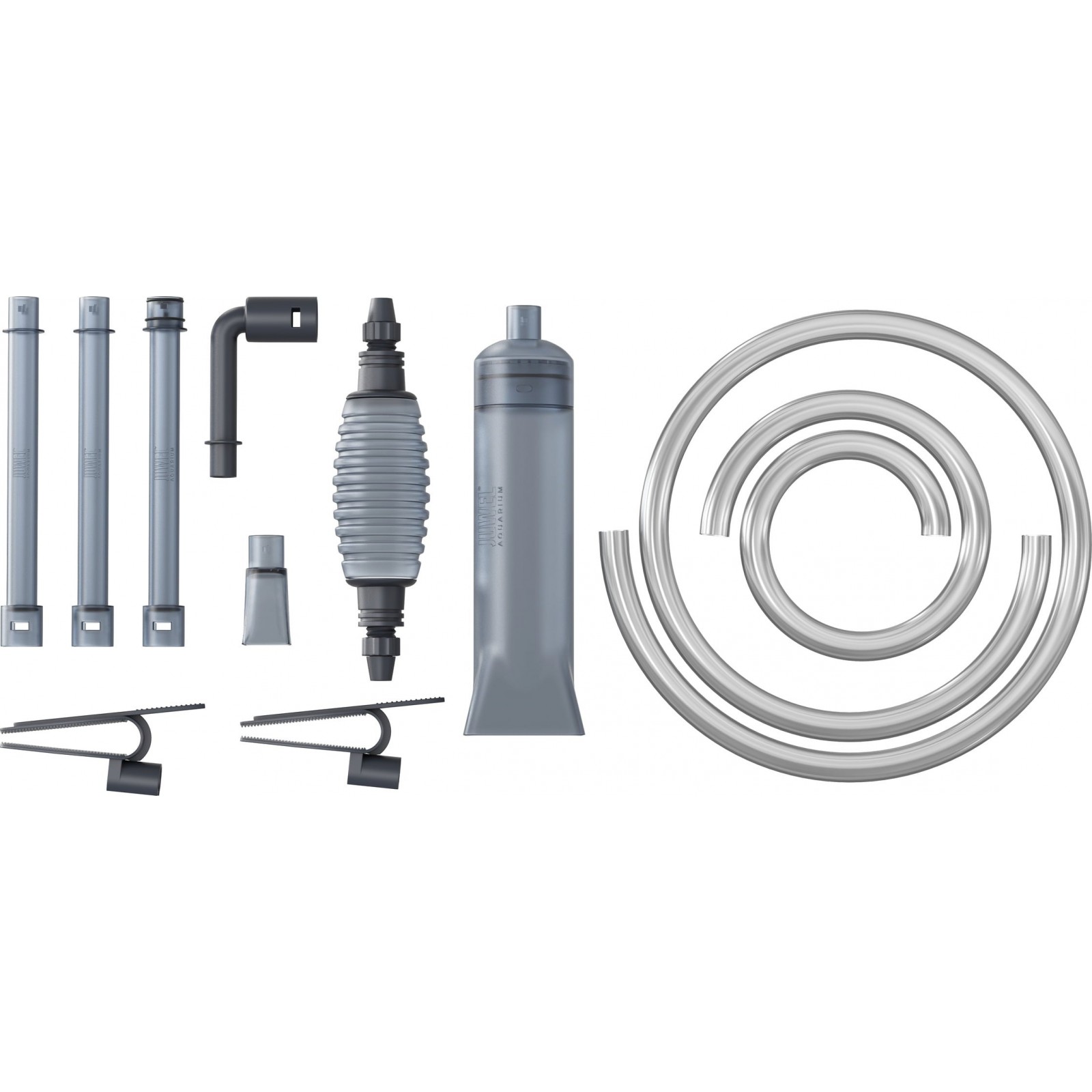 Grâce aux tubes d'admission pouvant être combinés individuellement, AquaClean 2.0 convient aux aquariums d'une hauteur allant jusqu'à 70 cm. En plus du nettoyage des fonds marins, grâce aux accessoires spéciaux, il est possible de nettoyer facilement le filtre interne, même dans des points difficiles à atteindre. L'utilisation des deux clips fournies Vous pouvez facilement fixer le tube sur le bord de l'aquarium et le godet pendant le nettoyage, empêchant ainsi les pertes et les inondations. Le tube a une longueur de 170 cm et permet ainsi un large éventail d'action. Le système EasyStart vous permet d'activer le flux d'eau avec une simple compression de pompe, sans avoir à aspirer avec votre bouche.