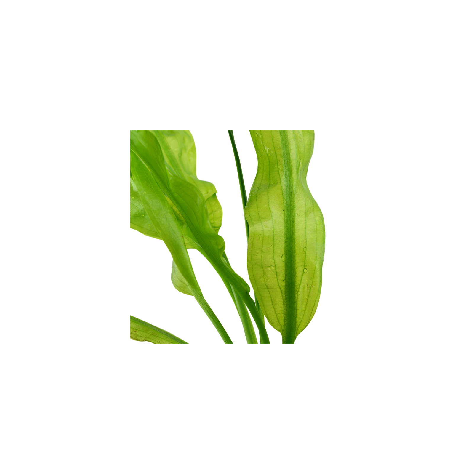 Les feuilles sont délicates, vertes claires et transparentes, avec une marge rainurée. Une seule racine peut produire plus de 40 feuilles, de 30 à 60 cm de long. Cela signifie que la plante est idéale comme une plante solitaire dans de grands aquariums (la plante devient grande jusqu'à 50 cm). Il est relativement tolérant et prospère à la fois dans de l'eau douce et dans de l'eau dure, surtout si le CO2 est ajouté.