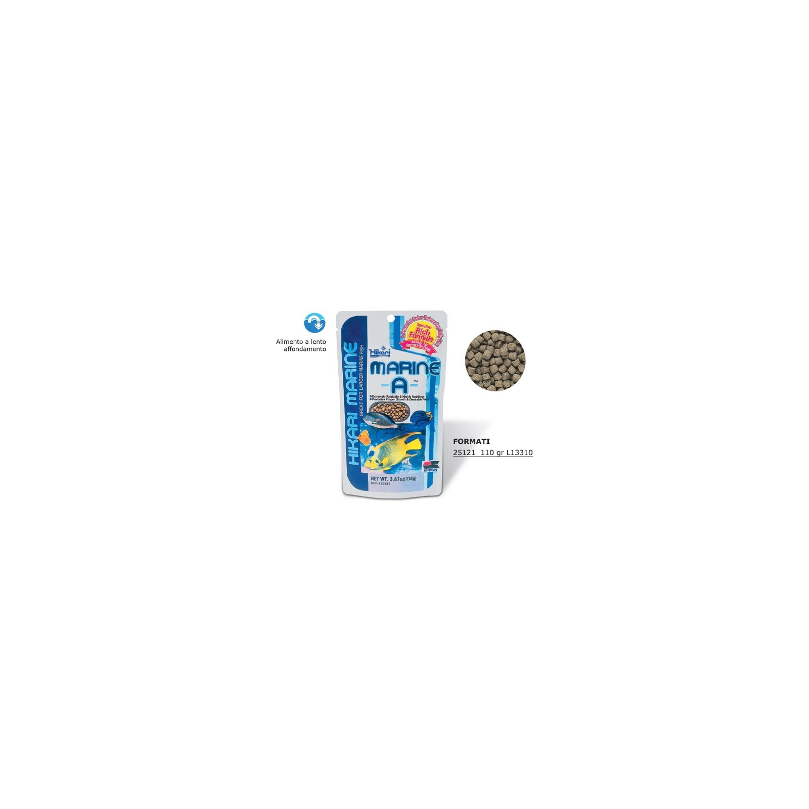 Régime alimentaire formulé dans de riches granulés spongieuses en spiruline, algue promoteur de couleur pour poisson marin. Nourriture idéale pour les gros poissons et quand vous voulez garder leur beauté naturelle.
