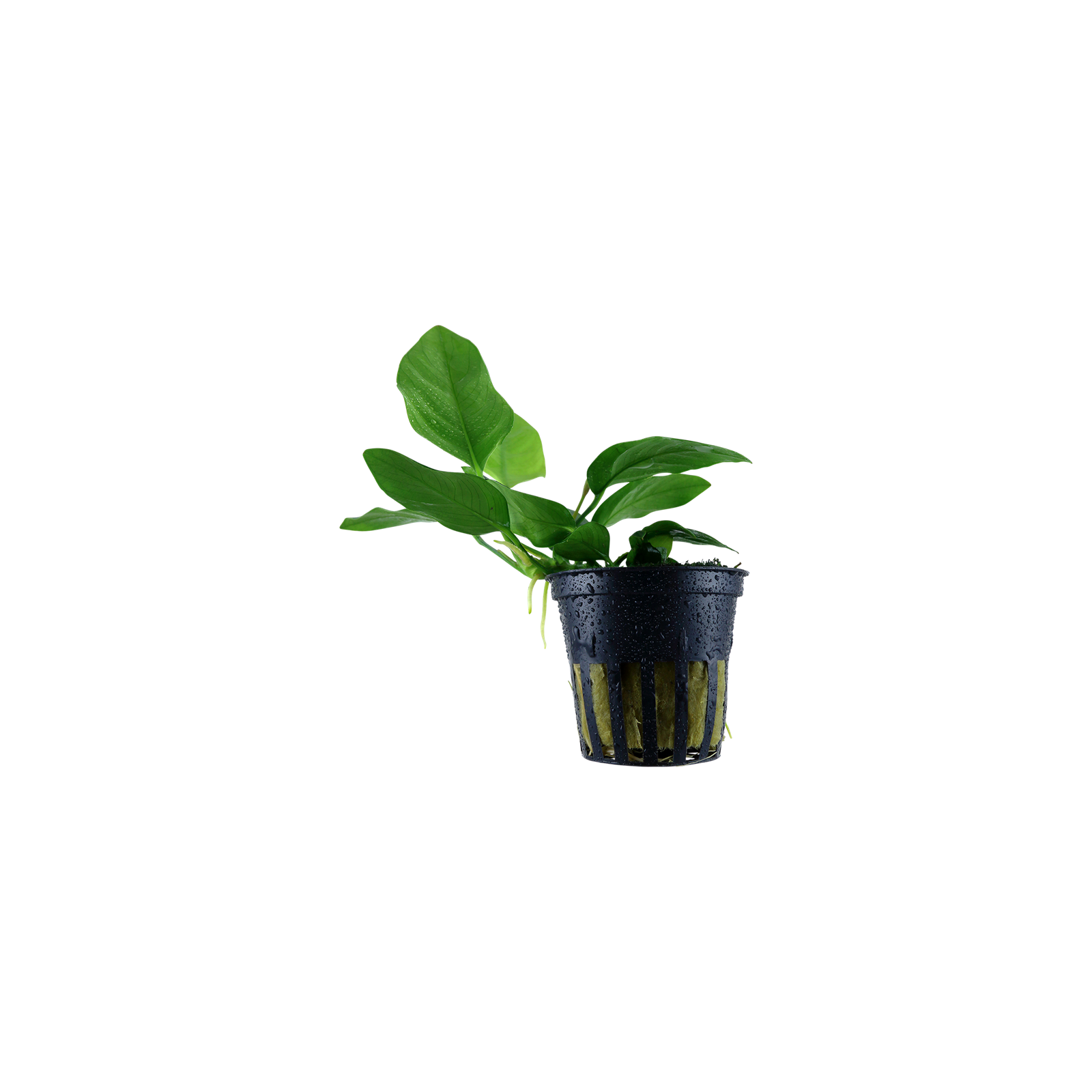 Originaire du Cameroun, il peut atteindre une hauteur de 5 à 10 cm. Le rhizome peut atteindre 10-15 cm ou plus. Il pousse lentement et ses feuilles durent plusieurs années, ce qui permet de s'installer de la croissance lente. Pour obtenir les meilleurs résultats, il est conseillé de la planter sur une pierre ou une racine d'arbre. Vous pouvez utiliser un fil de pêche pour le réparer jusqu'à ce qu'il soit seul. Si planté sur le fond, le rhizome ne doit pas être couvert car il a tendance à pourrir.