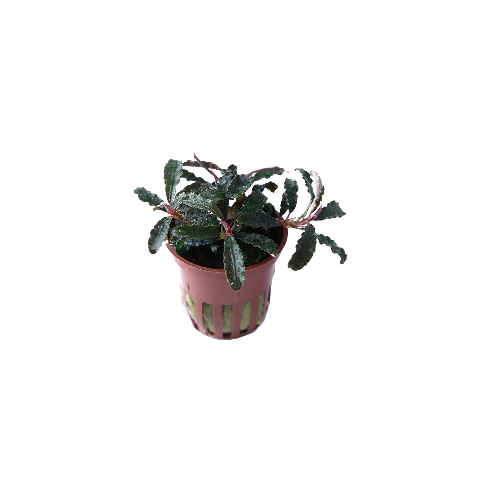 Les rizomes sont rouges et similaires à la variété rouge de Buyphalandra. Lorsqu'il est immergé, un gradient bleu métallique peut apparaître sur les feuilles.