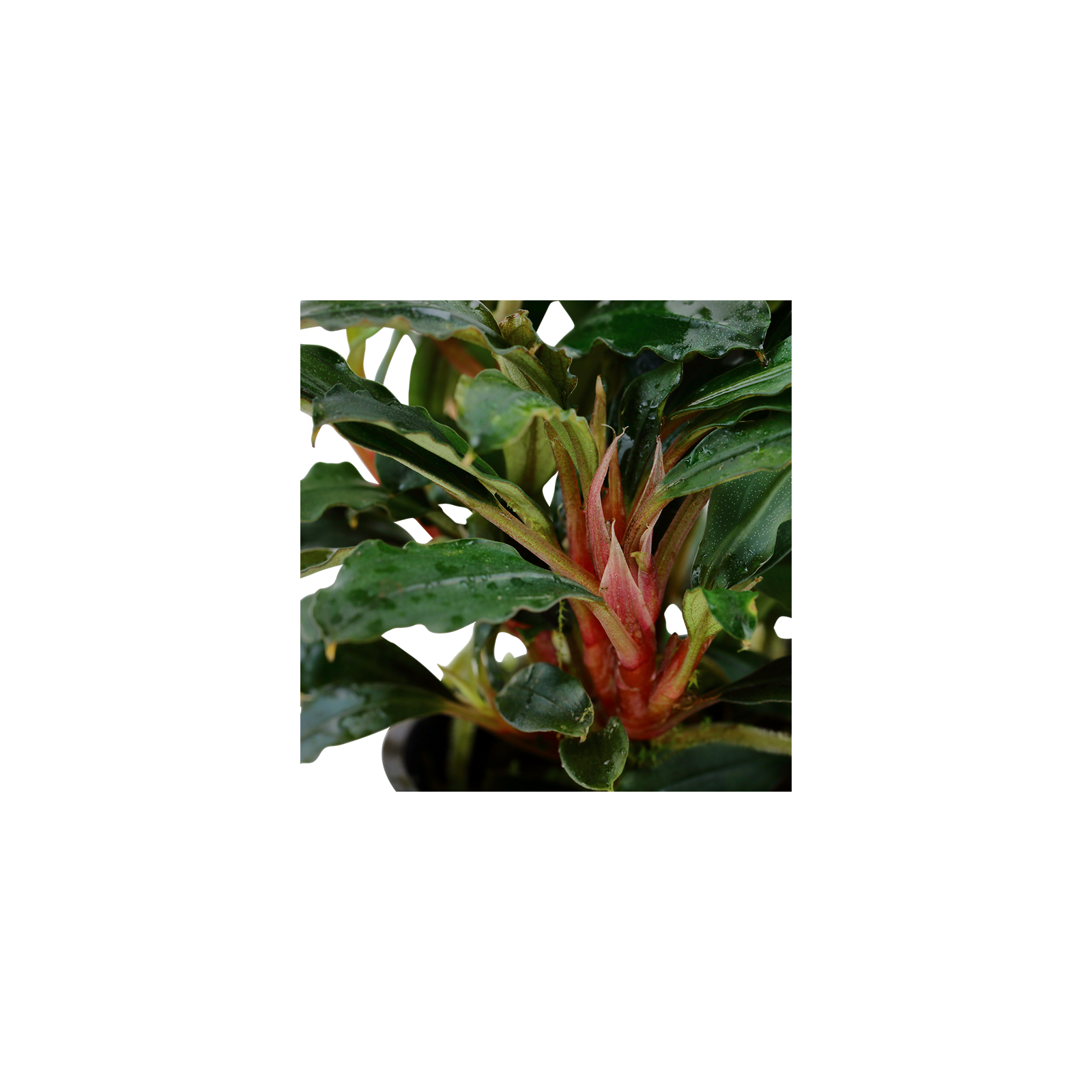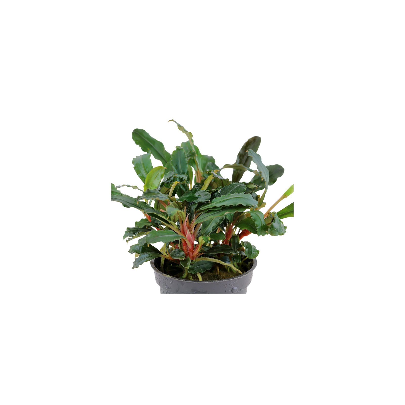 Le bucephalandra sp. Le «rouge» donne le meilleur des niveaux de lumière inférieure et est très facile à croître. Les feuilles sont très sombres vertes ou rouges. Sur les feuilles immergées, de nombreuses petites taches blanches apparaissent et parfois une petite couleur bleue métallique. Les dimensions des feuilles sont de 2 à 4 cm de large, de 4 à 6 cm de long et ont généralement des bords ondulés.