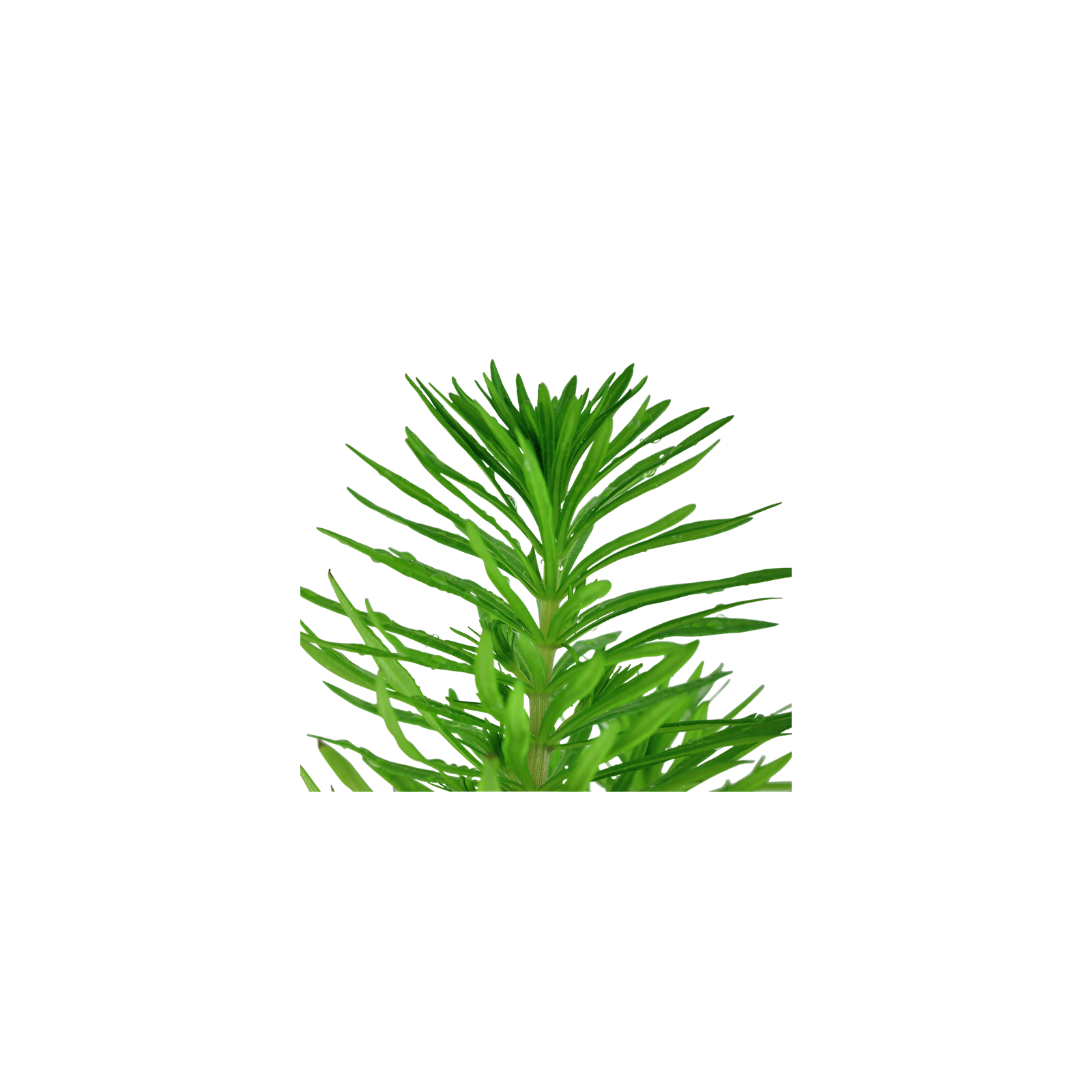 Le pogostime indien exécute des groupes verts brillants compacts de forme, des actes de conifères, de 15 à 40 cm de hauteur et de 1 à 3 cm de large.