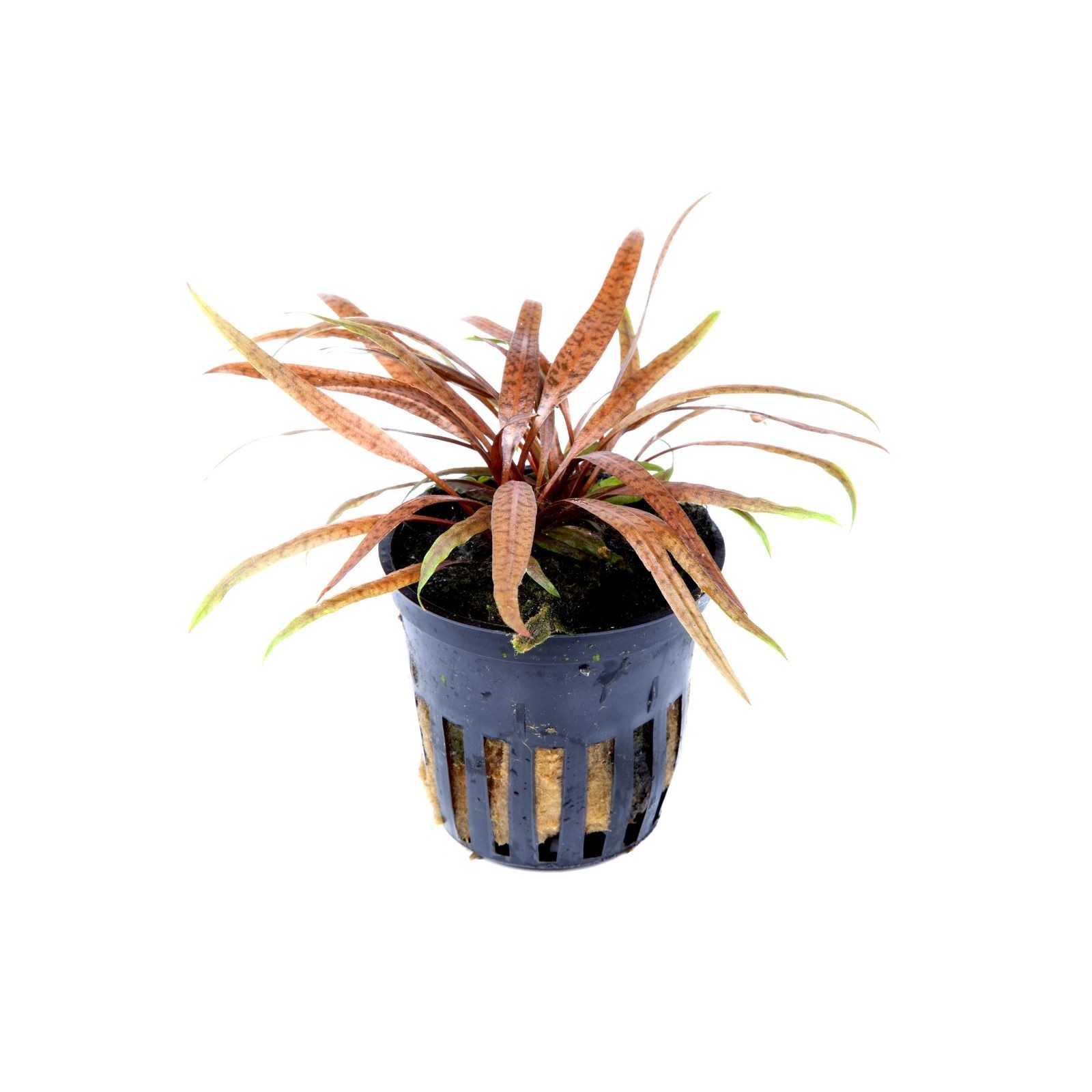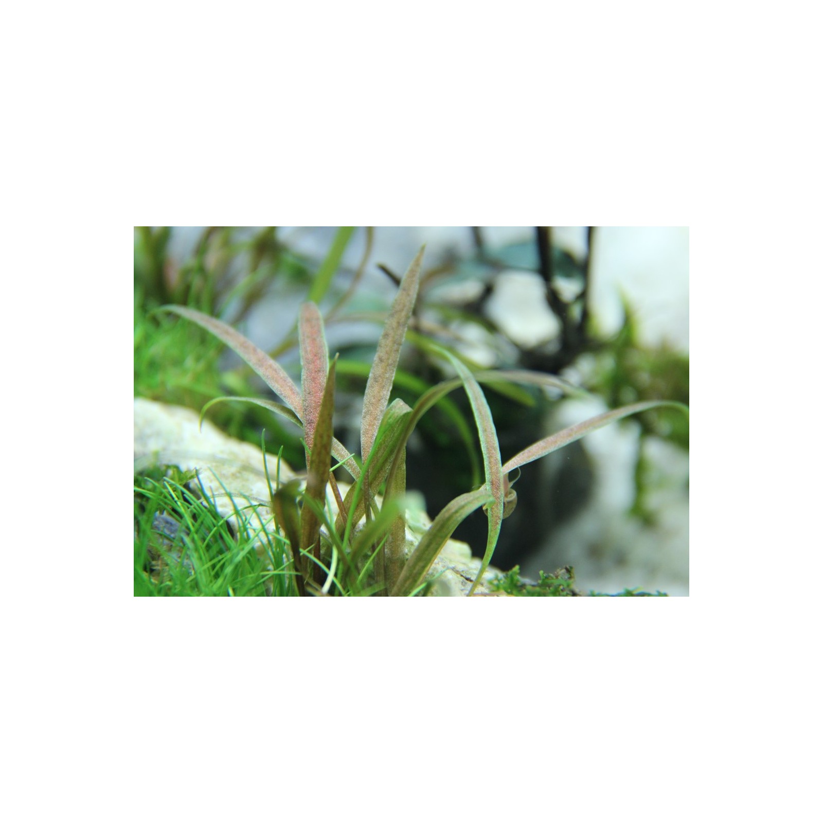 Les feuilles étroites et brunes rouges ont des dessins clairs et noirs et des bords ondulés. Chaque feuille pousse jusqu'à environ 1-3 cm de large et jusqu'à 15 cm de long, donnant à la plante une apparence légère et gracieuse, facile à combiner avec d'autres plantes à l'intérieur de l'aquarium, permettant ainsi de beaux contrastes.