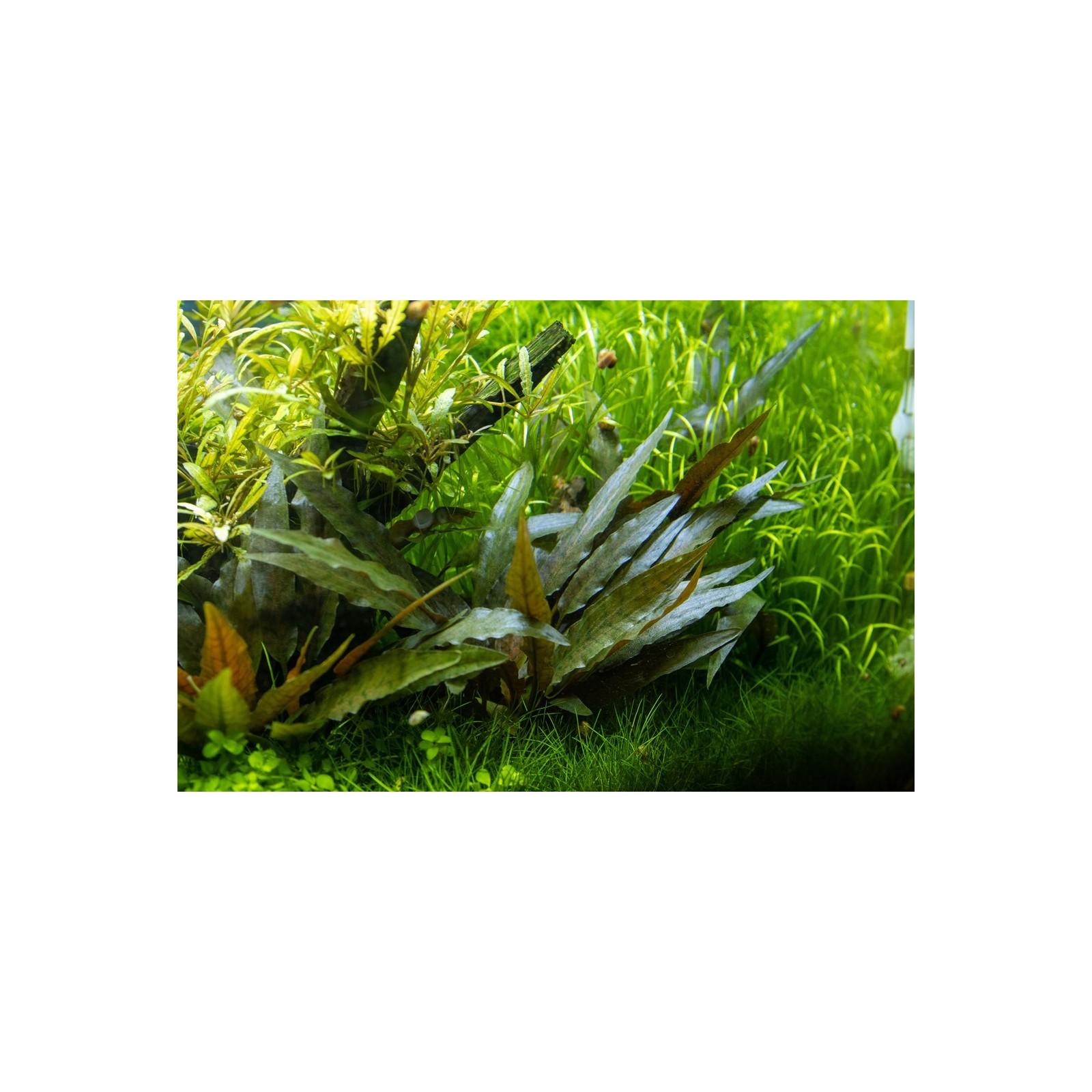 La cryptocoryne Beckettii 'Petchii' est une petite variété de Cryptocoryne Beckettii de Sri Lanka, qui a de belles marges de feuilles légèrement rainurées de 10 à 15 cm de long. Les feuilles deviennent brunes d'olive sombres avec la partie violette inférieure. Comme beaucoup d'autres cryptocoryne, la couleur et la forme des feuilles dépendent largement des conditions environnementales de l'aquarium.