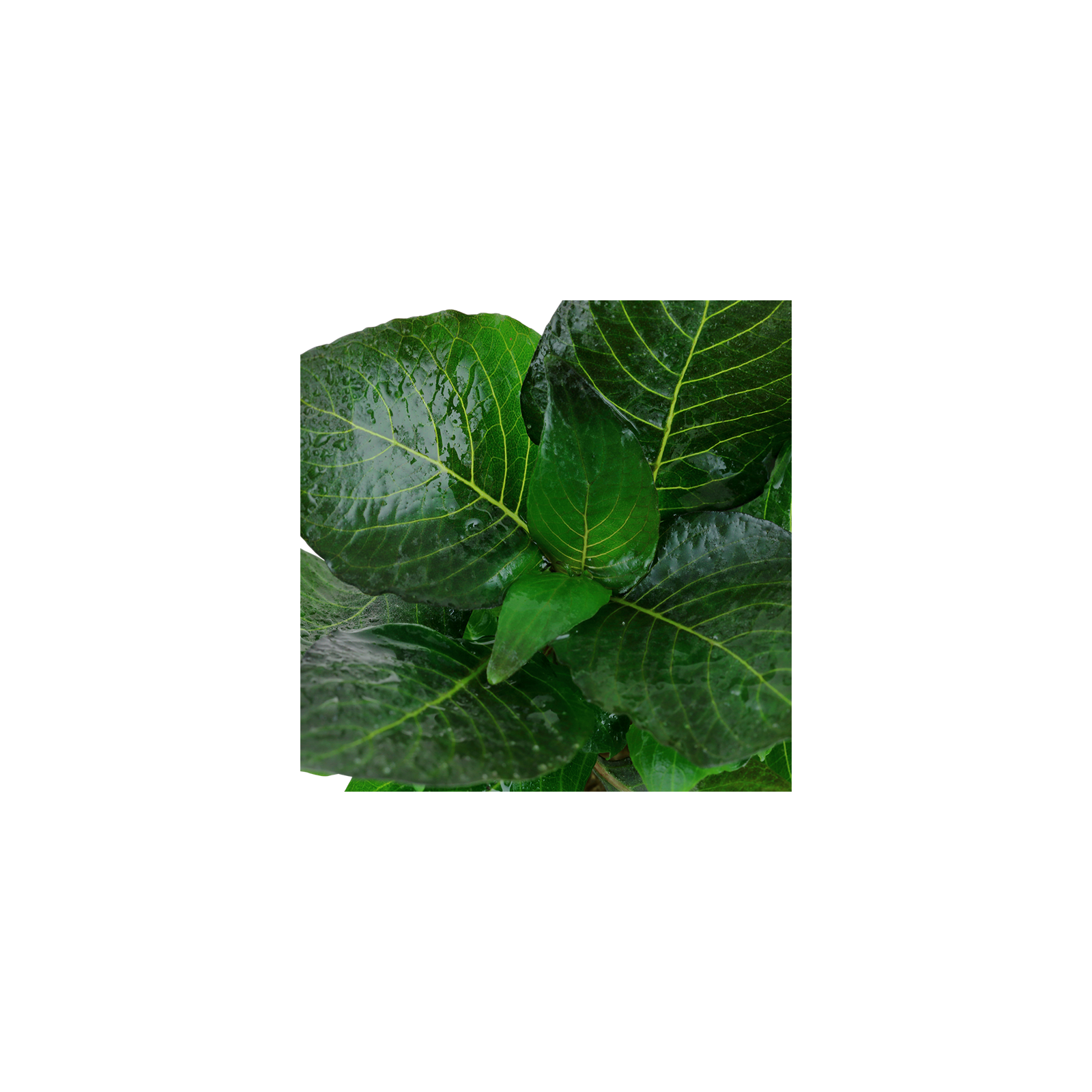 Former de nombreuses pousses latérales, qui améliorent l'aspect compact. Les feuilles sont en couleur marron foncé lorsque la plante quitte la pépinière, mais après une période de transition dans l'aquarium, ils deviennent vert clair et blanc en bas.
