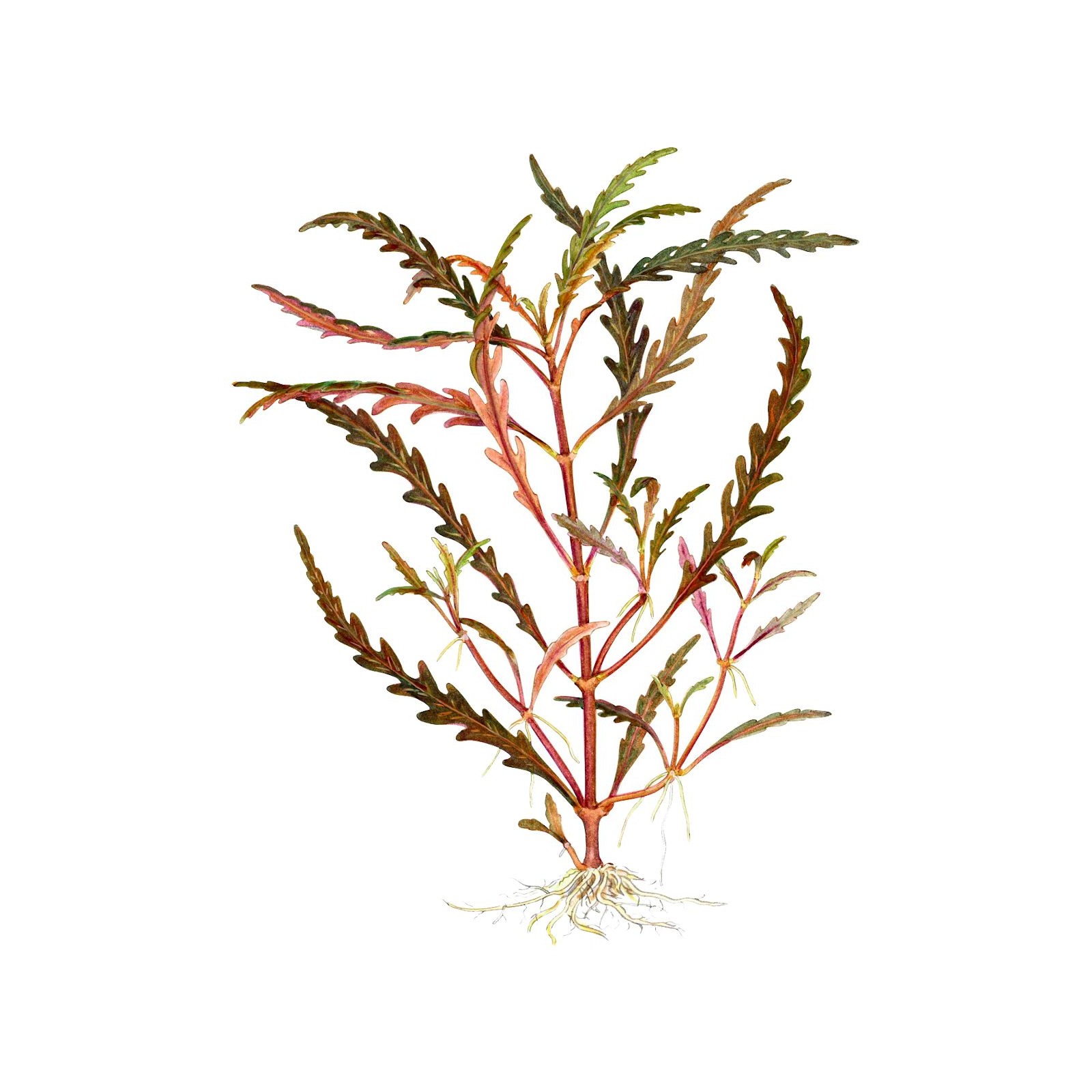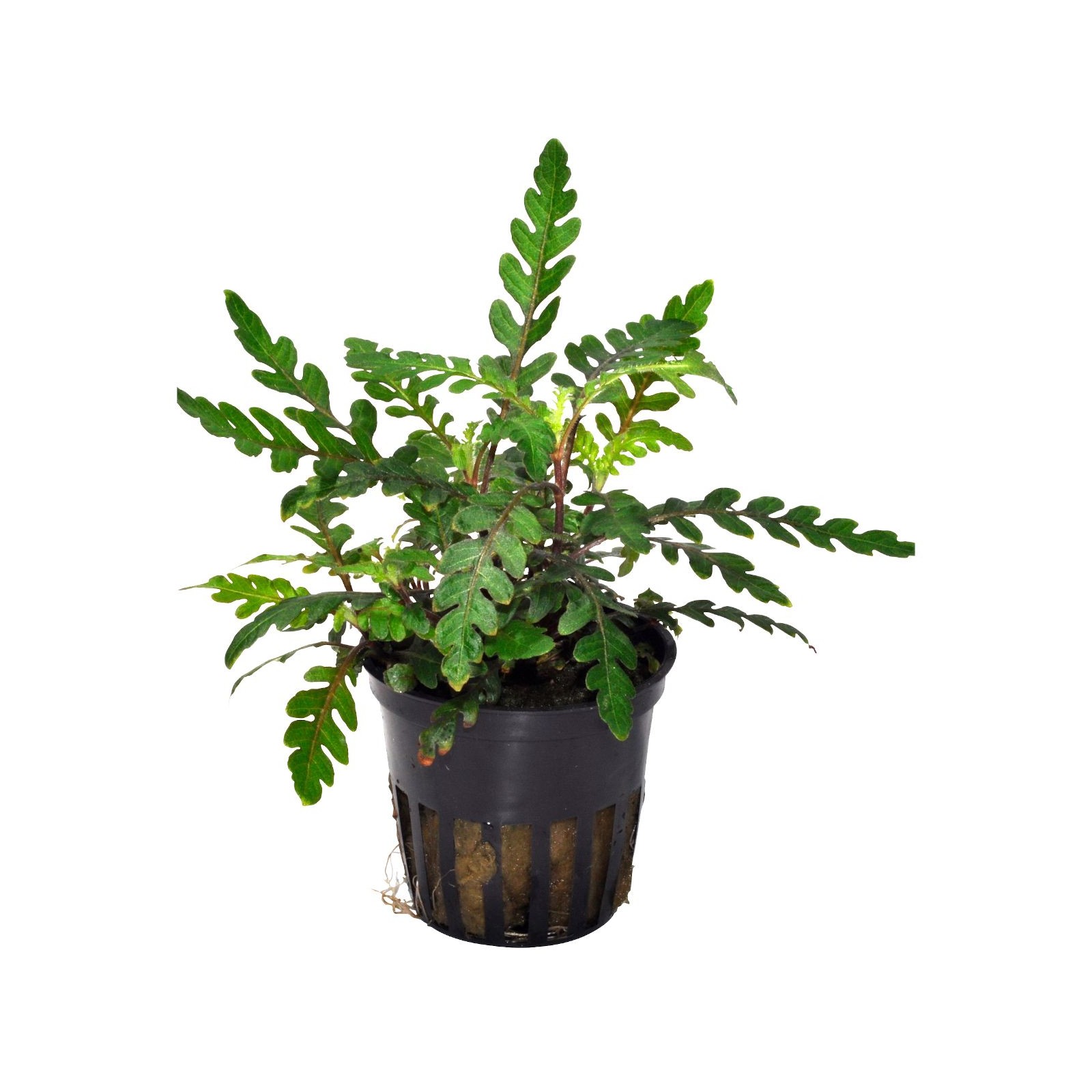 Hygrophila pinnatifida est originaire de l'Inde. Il a des feuilles brunes et collé sur la surface, avec une couleur bordeaux caractéristique au fond. Formez plus de germes horizontales si les boutons supérieurs sont pincés. De cette manière, la croissance compacte et attrayante est maintenue. Les choux horizontaux latéraux sont facilement attachés au bois et aux roches. La croissance est modérée, avec des tiges élevées de 15 à 40 cm et de largeur de 10 à 20 cm, et la couleur est attrayante si elle est plantée en petits groupes avec un fond simple. L'éclairage intense assure une croissance compacte, grâce au taux de croissance moyen de l'usine.