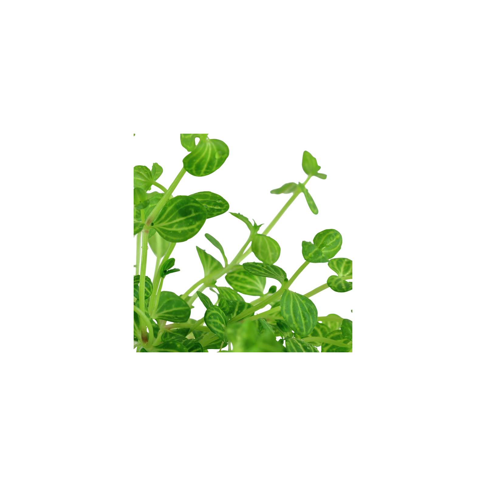 La "variée" de la rotundifolia, Lindernia pousse sur les rives sablonneuses des cours d'eau en Asie. Cette variante marbrée peut pousser de nouvelles pousses avec des feuilles complètement vertes. Coupez ces pousses pour garder l'apparence mariée. La plante est peu exigeante et forme rapidement des groupes compacts et peut prendre une élaboration.
