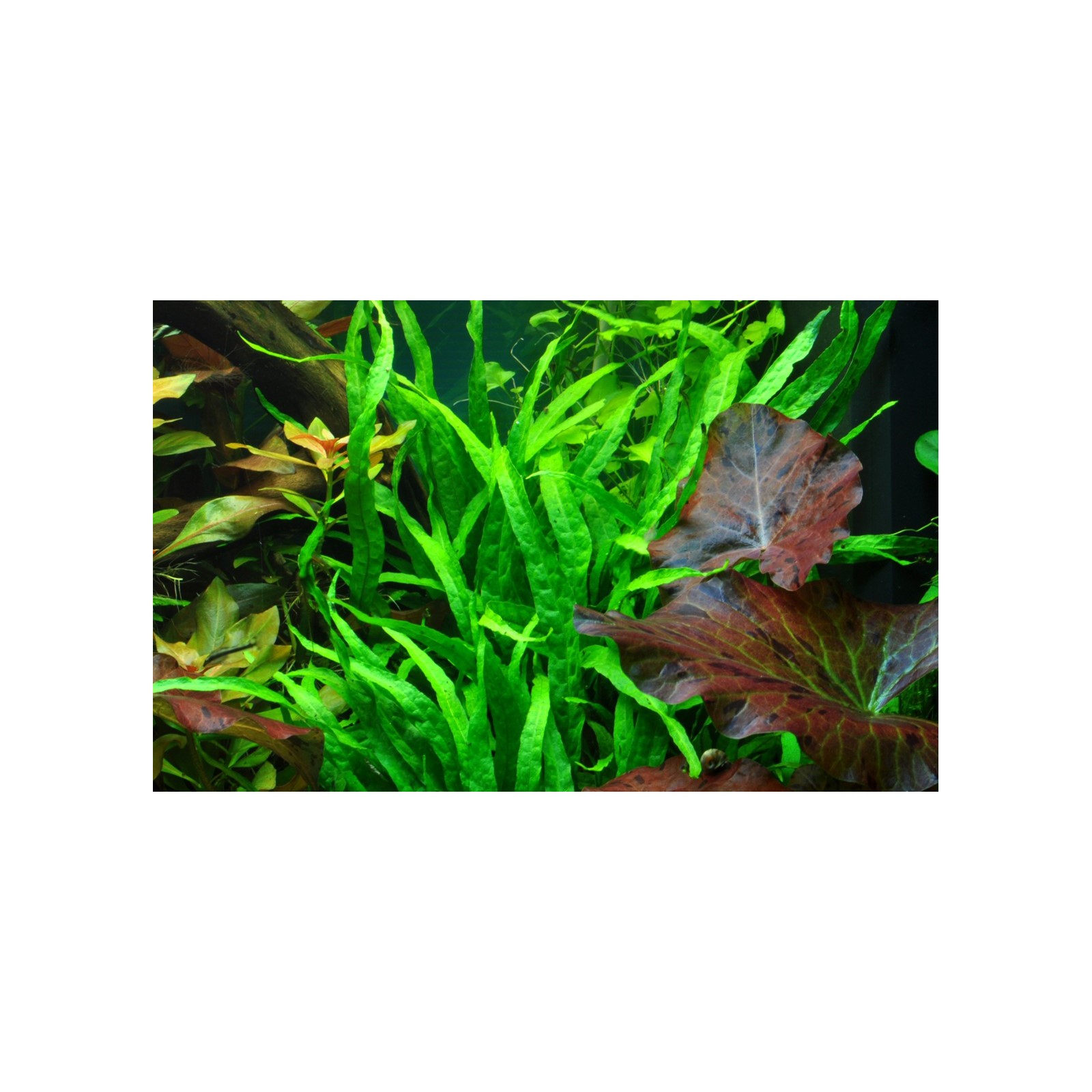 Les feuilles atteignent une longueur de 10 à 20 cm, tandis que le rhizome peut atteindre 10-15 cm ou plus. La plante est facilement attachée aux racines et aux pierres. C'est une plante décorative, adaptée également aux petits aquariums.