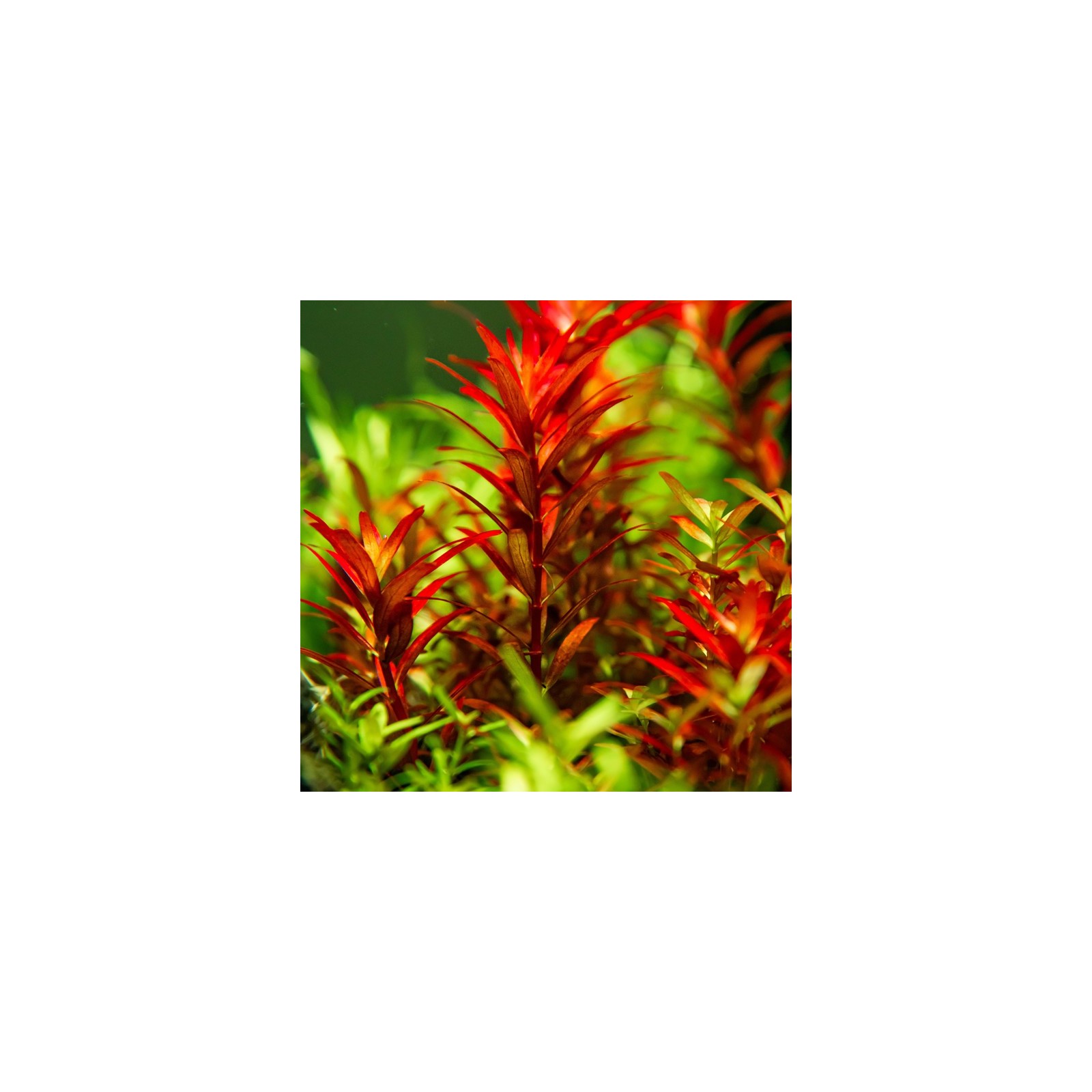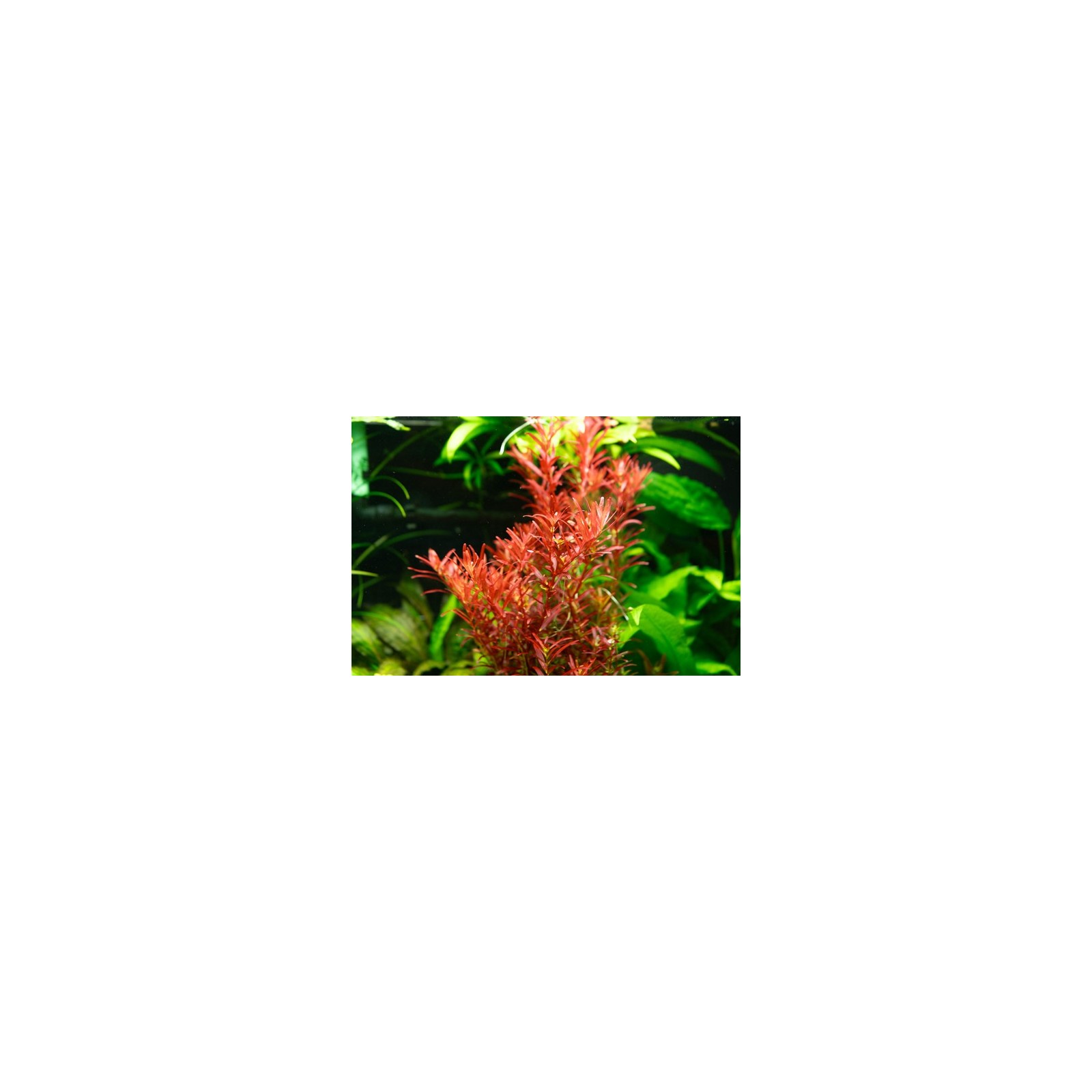 Le "sang rouge" est la variante la plus intensément rouge de la rotandifolia rota. L'emplacement à côté des plantes vertes clair écho à la couleur rouge vibrante.
