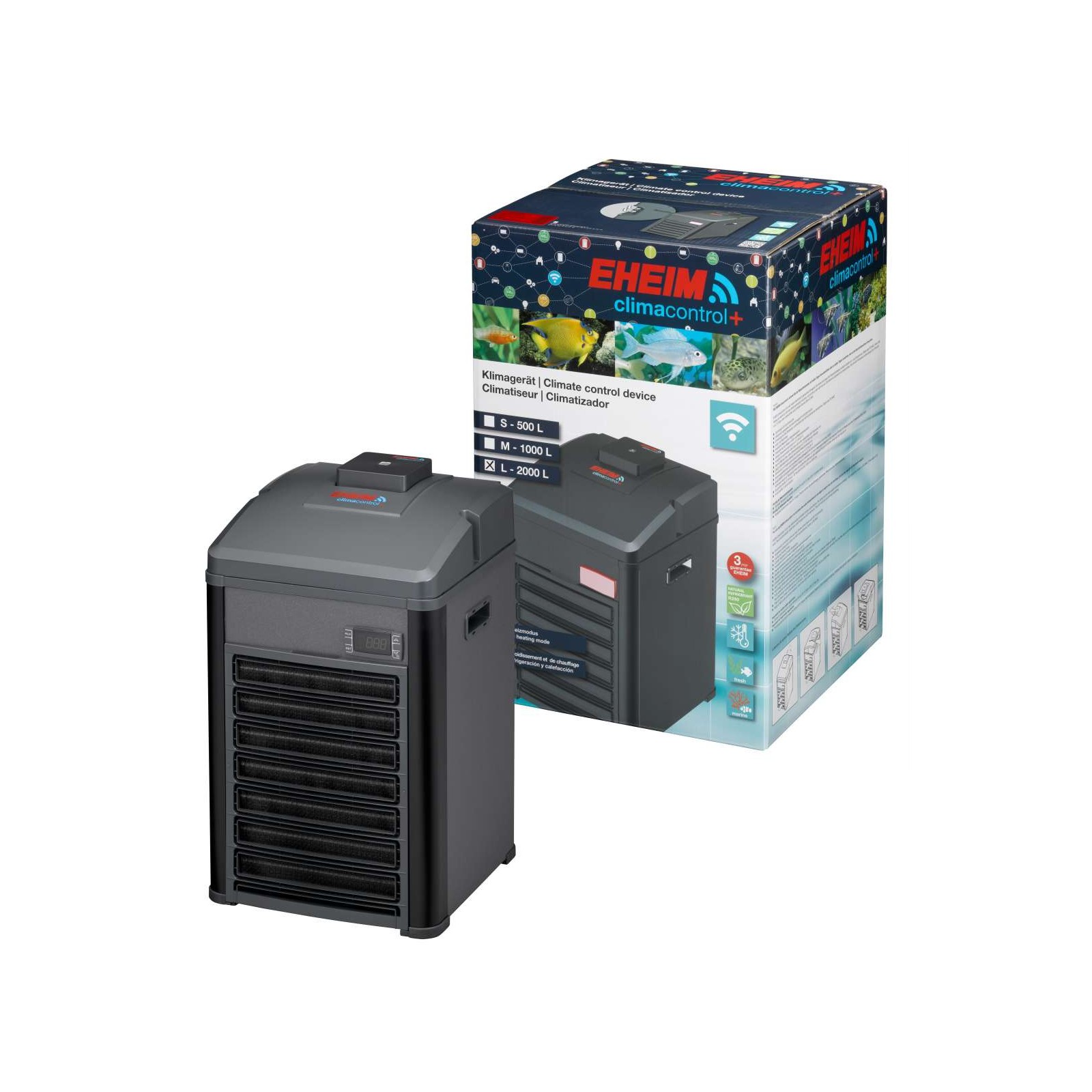 Eheim Climacontrol + est notre nouveau dispositif de climatiseur de contrôle électronique. Il suffit de définir simplement la température de l'eau idéale en mode sans fil - via des smartphones, des tablettes ou un PC / Mac. Si l'eau est trop chaude, l'unité se refroidit automatiquement et si elle devient trop froide, elle chauffe. L'unité surveille et contrôle tout.