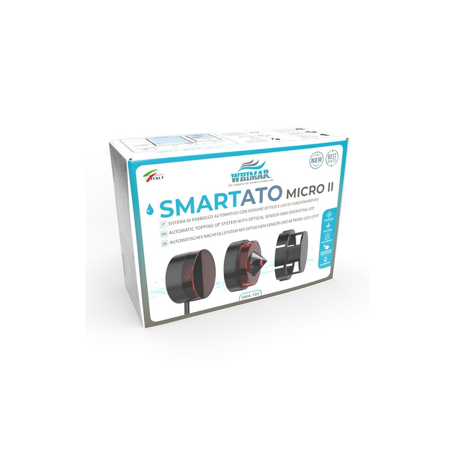 Les Whimar Smart Ato Micro II est un système de recharge automatique avancé conçu pour garantir une fiabilité maximale, même dans des espaces réduits. Le capteur optique numérique «sans contact» breveté détecte le niveau d'eau sans composants mécaniques soumis à une usure, garantie de rendement et de précision à long terme.