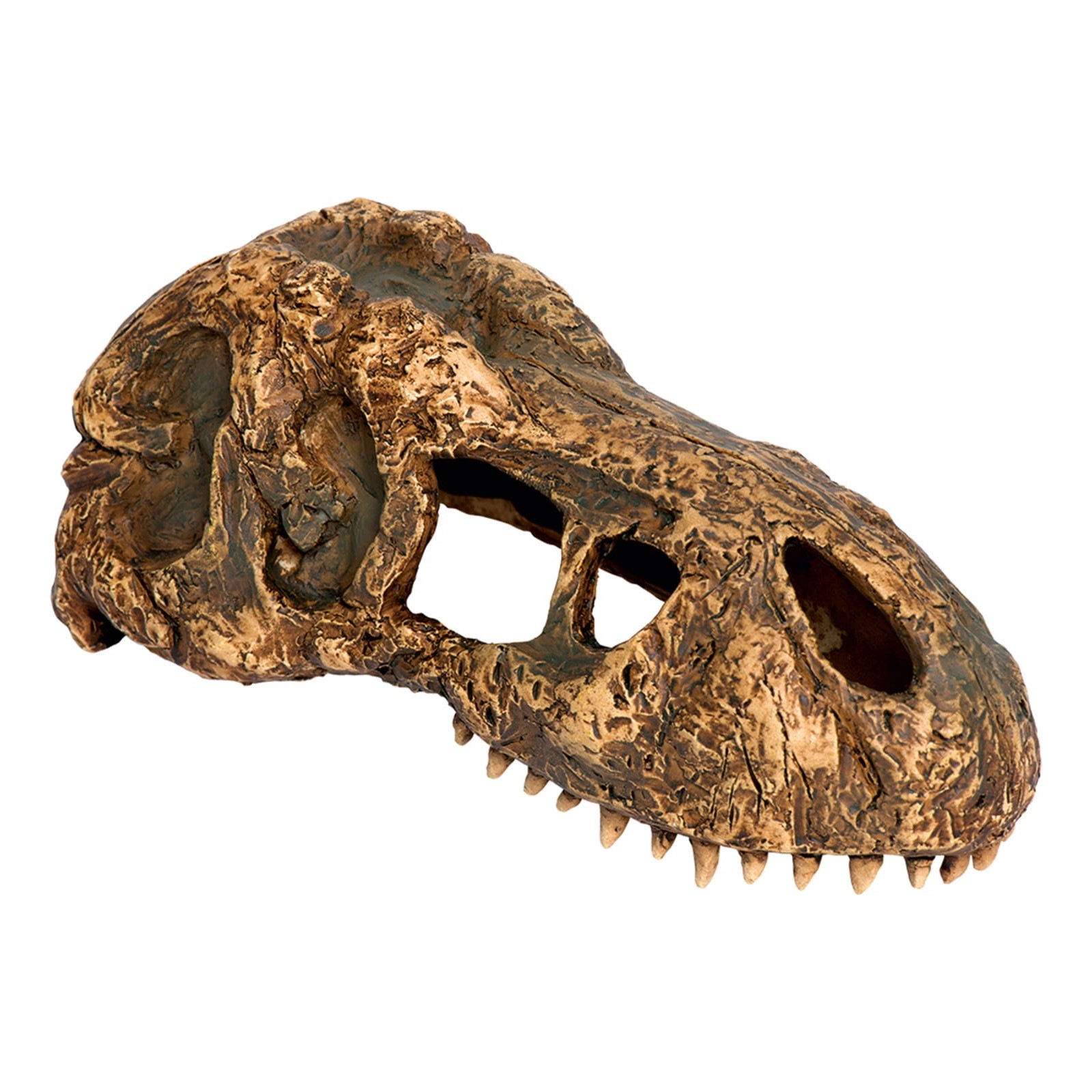 Cette cachette fossile offre plusieurs entrées pour un accès facile et ajoute une taille supplémentaire au cadre du terrarium. Le microclimat humide à l'intérieur du crâne Terre Terre T-Rex exo favorise la thermorégulation et l'hydratation, soutenant également le processus de combinaison de reptiles naturels.