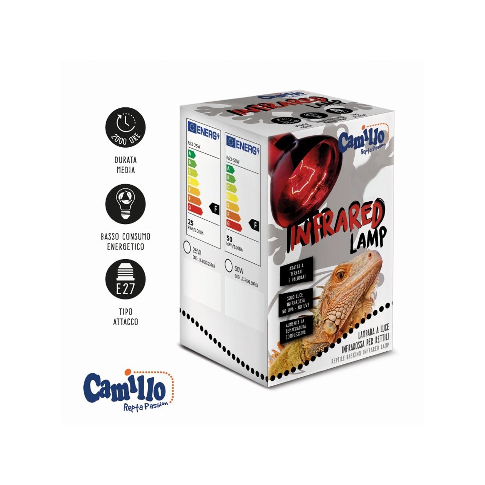 La lampe infrarouge camillo (Blu Bios) Il est conçu pour fournir une source de chaleur stable et naturelle, ce qui est essentiel pour garantir le bien-être, la digestion et la vitalité des reptiles.