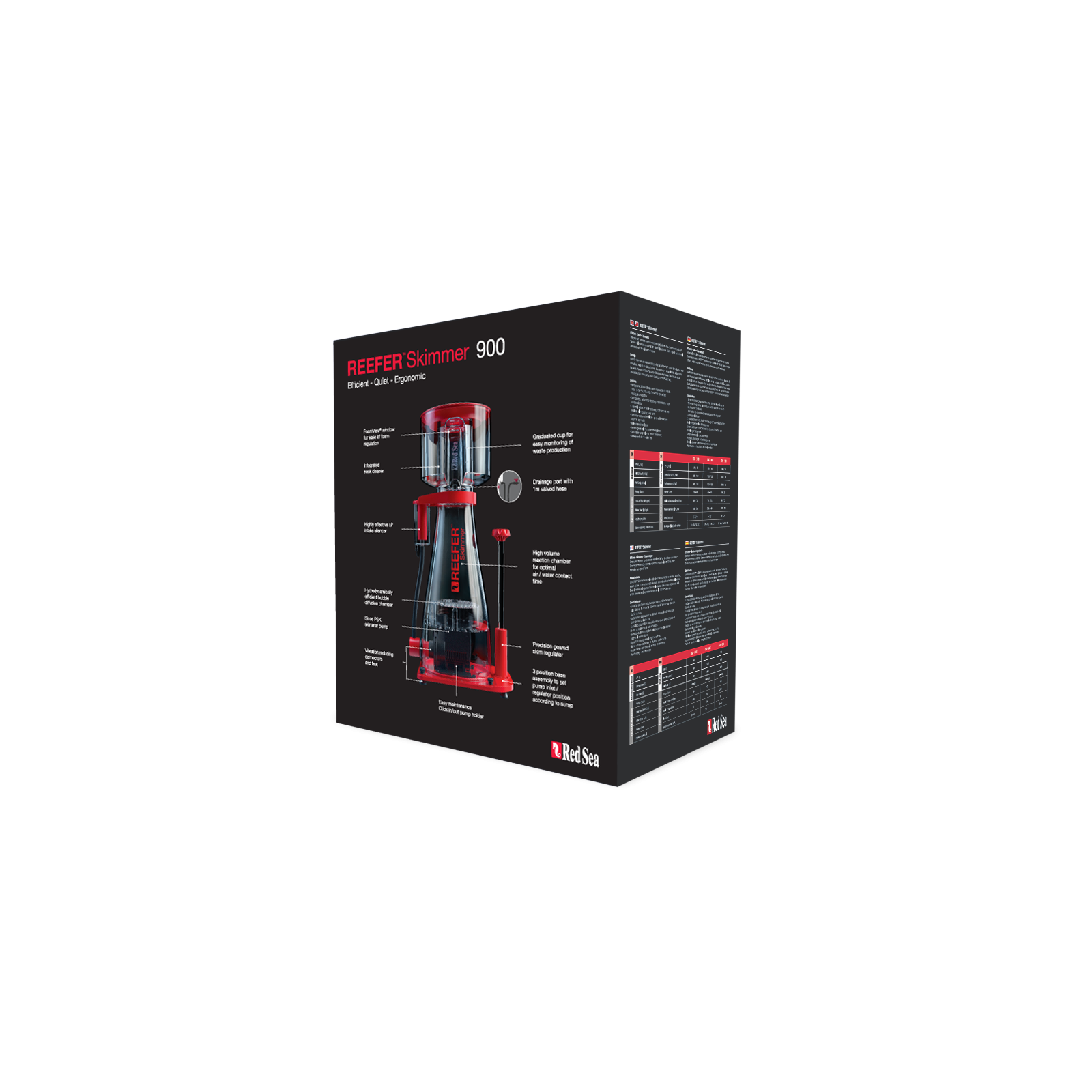 Les Reefer DC Skimmer 900 C'est le modèle le plus avancé de la ligne Smart Skimmer Red Sea, conçu pour les grands systèmes de récif, où la stabilité et la qualité de l'eau sont fondamentales. Grâce à une combinaison de technologies de pointe, de conception optimisée et de composants hautes performances, il garantit une élimination efficace des nutriments dissous et des substances organiques.