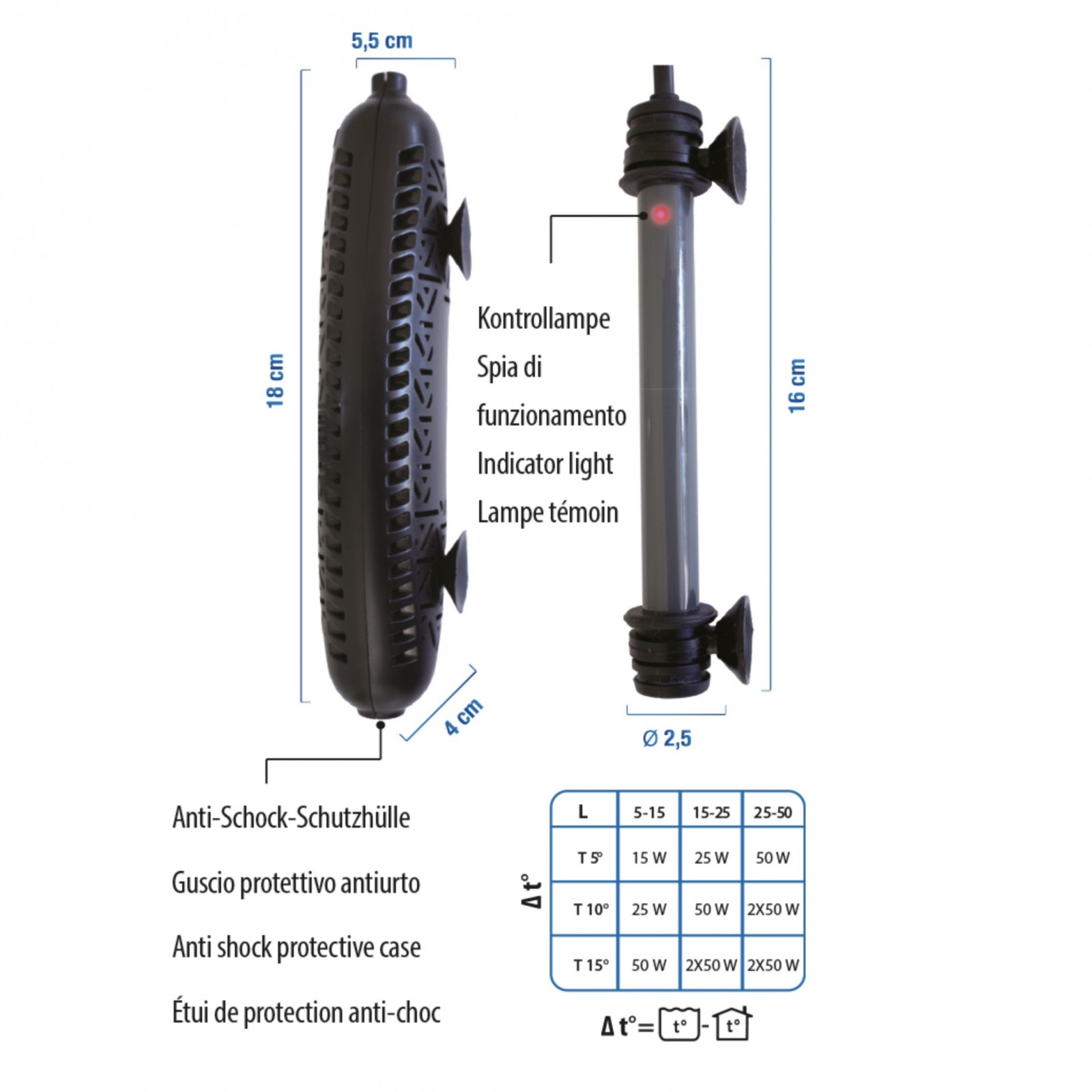 Chauffage automatique pour aquariums, paludaires et tortues complètement submersibles